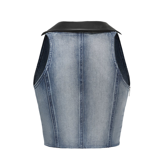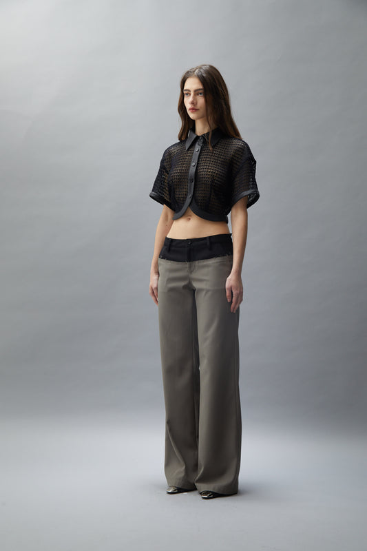 Black Mesh and Leather Patchwork Short Sleeve Cardigan