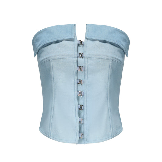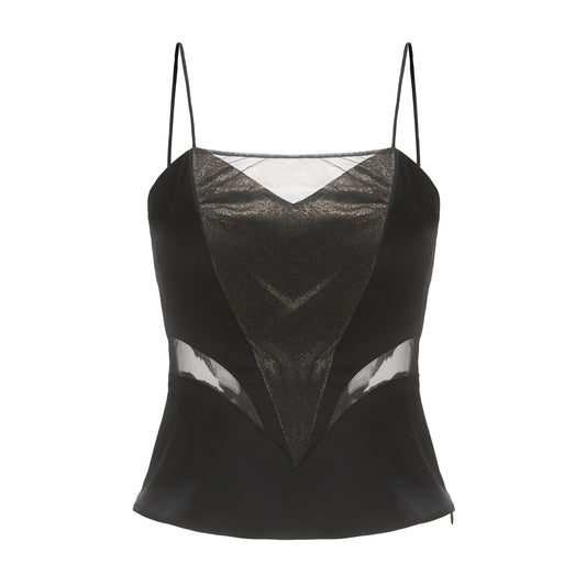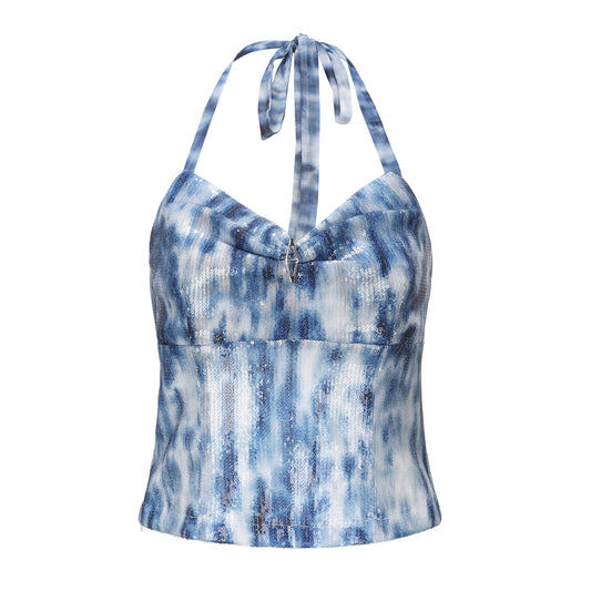 Blue and White Sequined Halterneck Camisole Top with Elastic