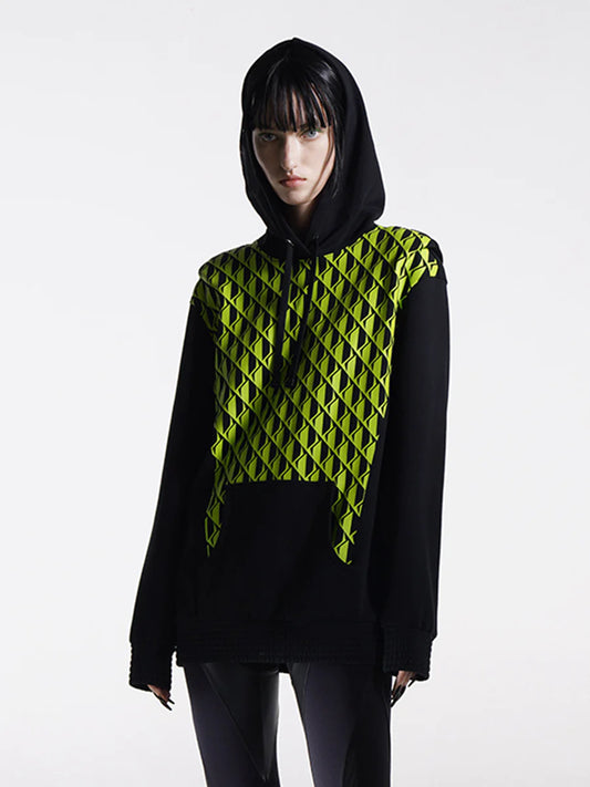 NEON GREEN PRINTED HOODIE WITH SHOULDER PAD