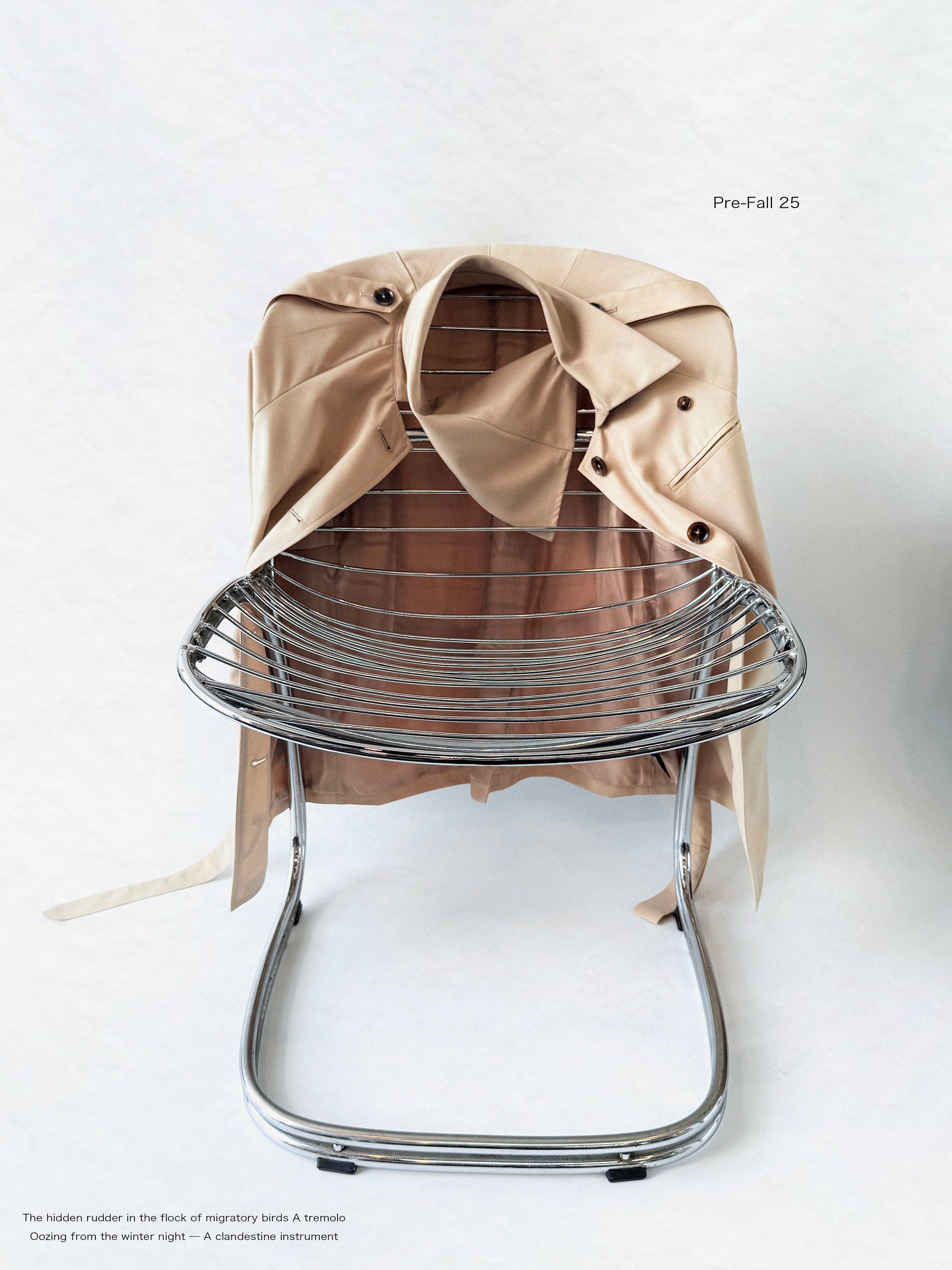 Inner pleated structure of pants creates skirt-like silhouette while walking