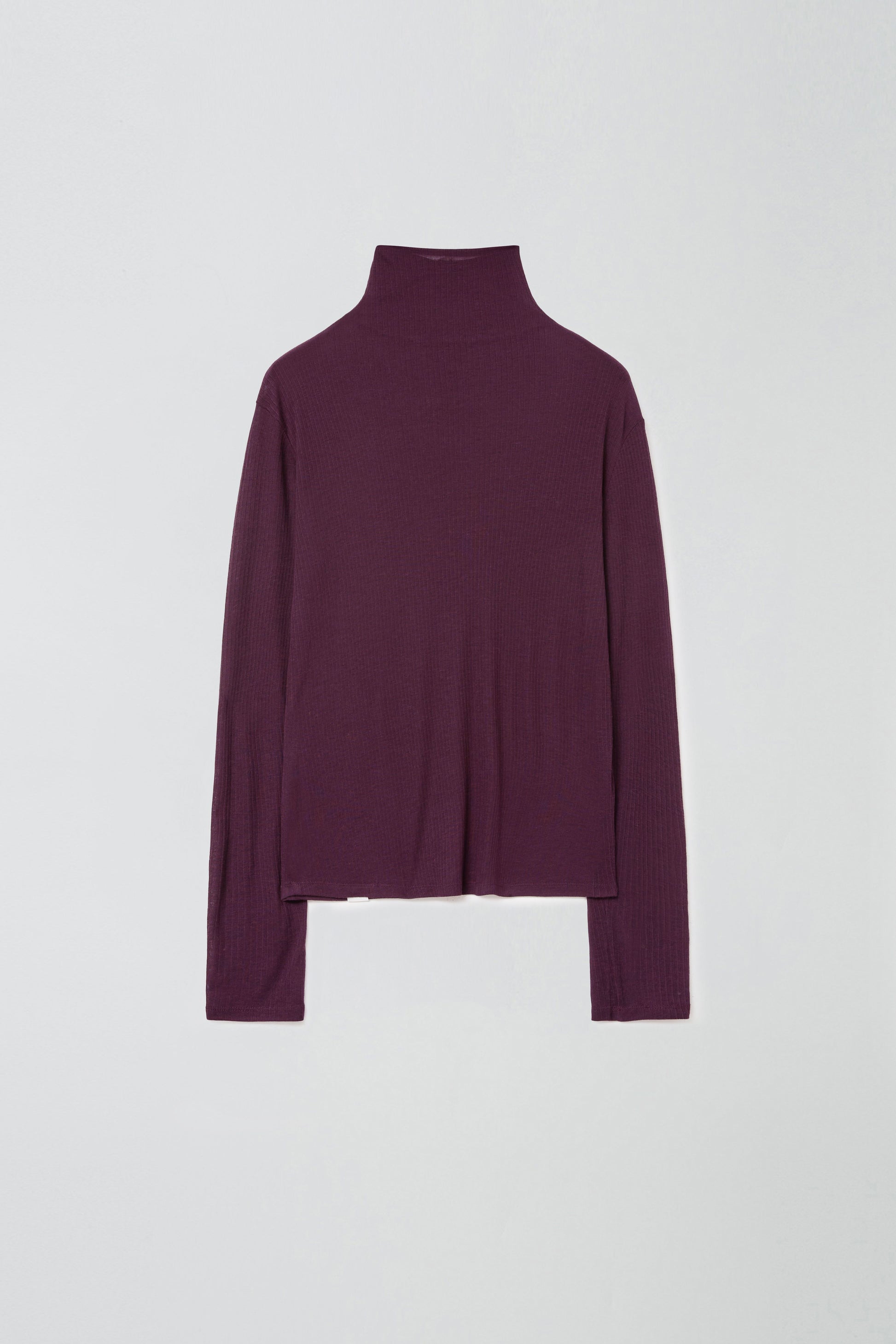 This is a basic turtle-neck top made from a lightweight fabric, offering a clean and minimal design.