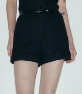 Black Embellished Tweed Straight-Cut Shorts