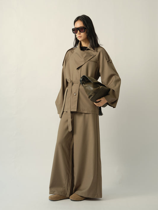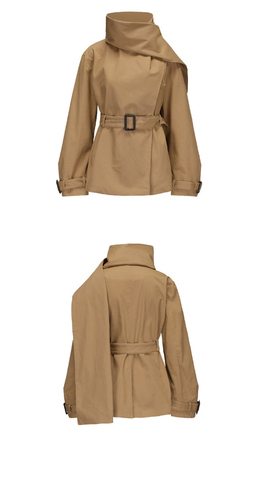 Wrap-Style Collar Waist-Cinching Trench Coat