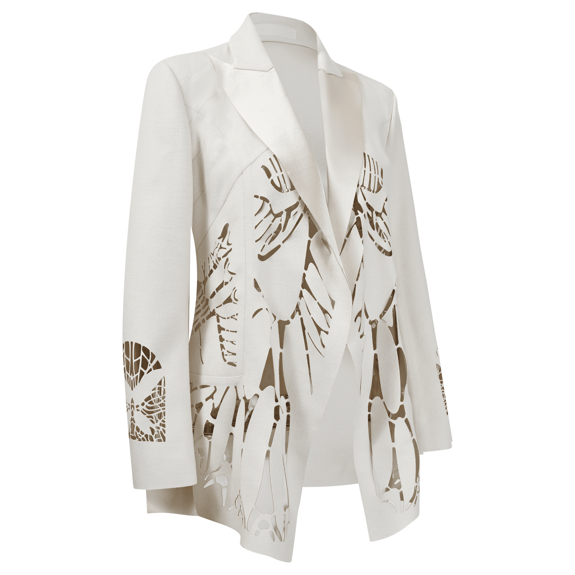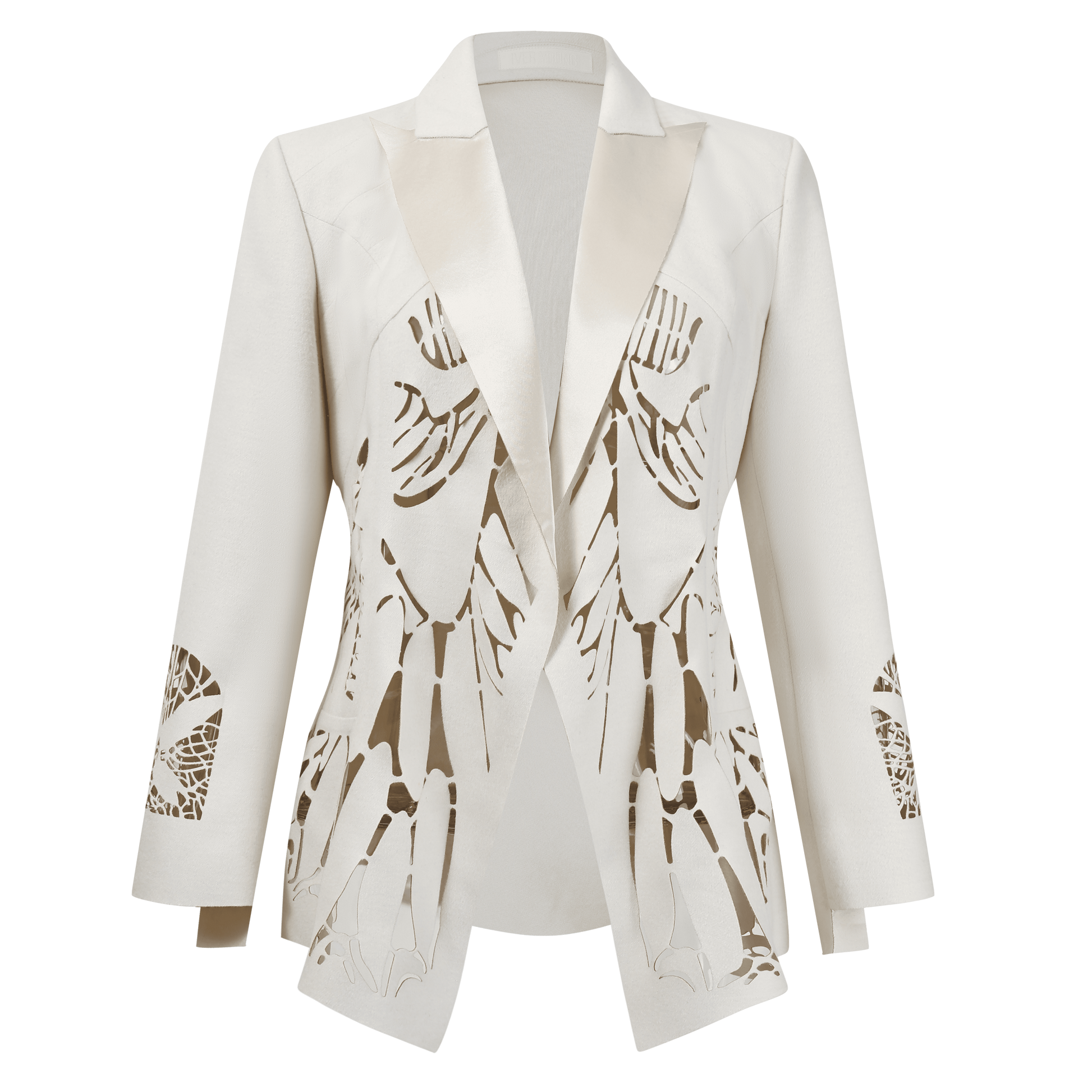 ·The front piece and cuffs feature a hollowed-out butterfly pattern