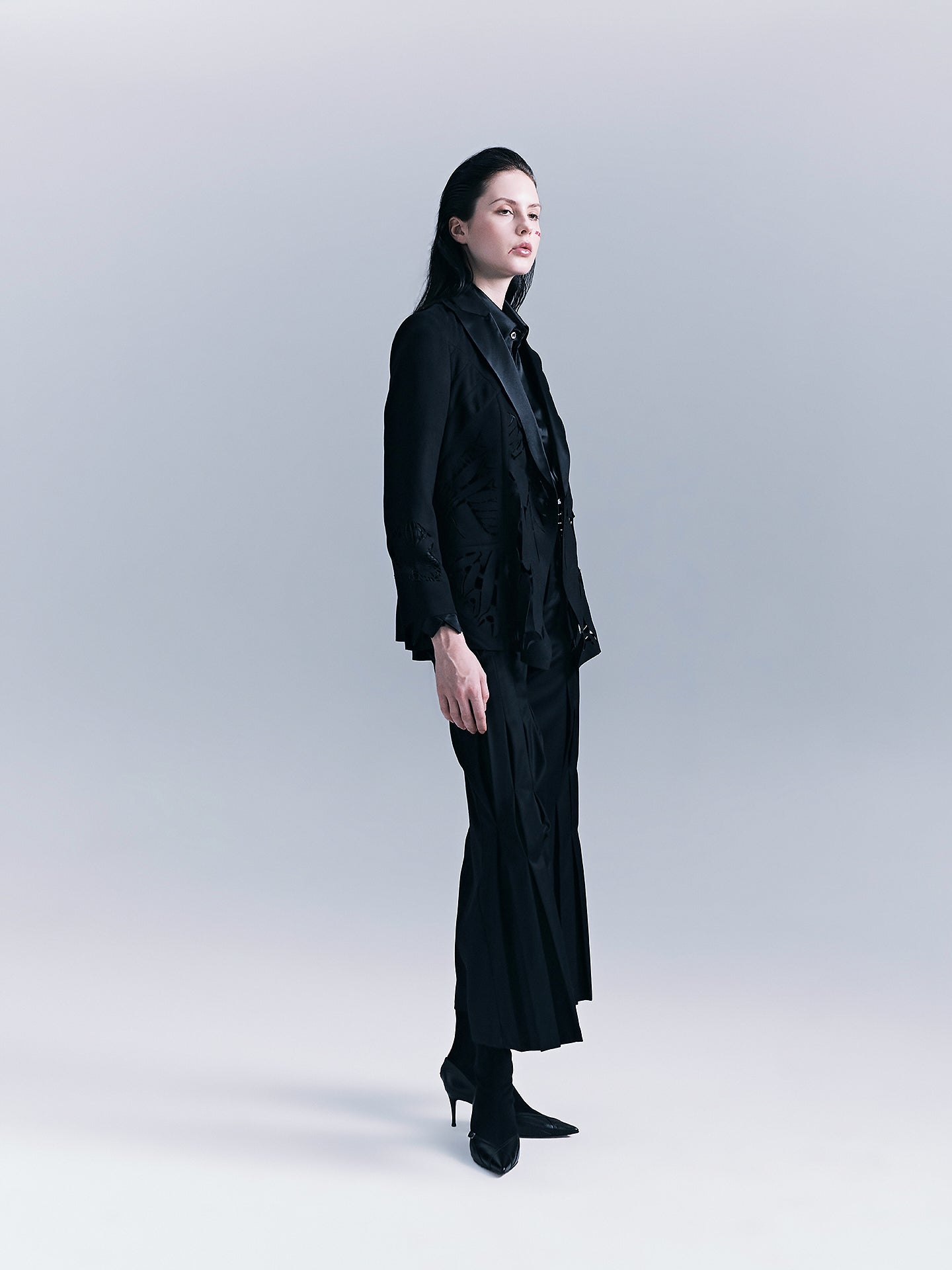 ·The front piece and cuffs feature a hollowed-out butterfly pattern