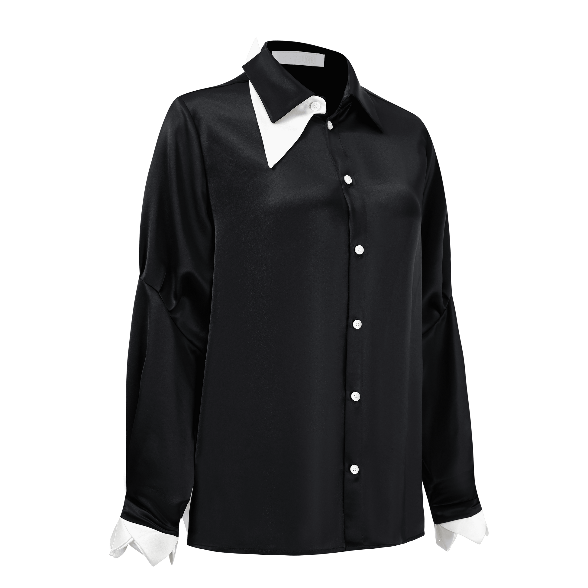 ·he collar is decorated with an asymmetrical white triangle
