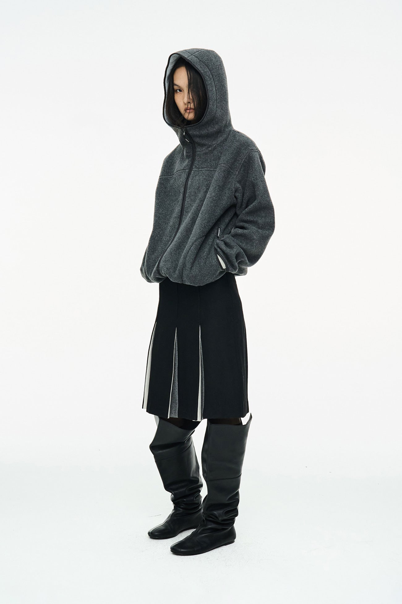 FLEECE HOODED ZIP UP / CHARCOAL