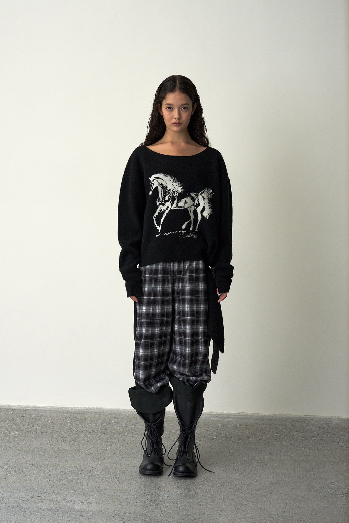 Horse Jacquard Knit Sweater-Black