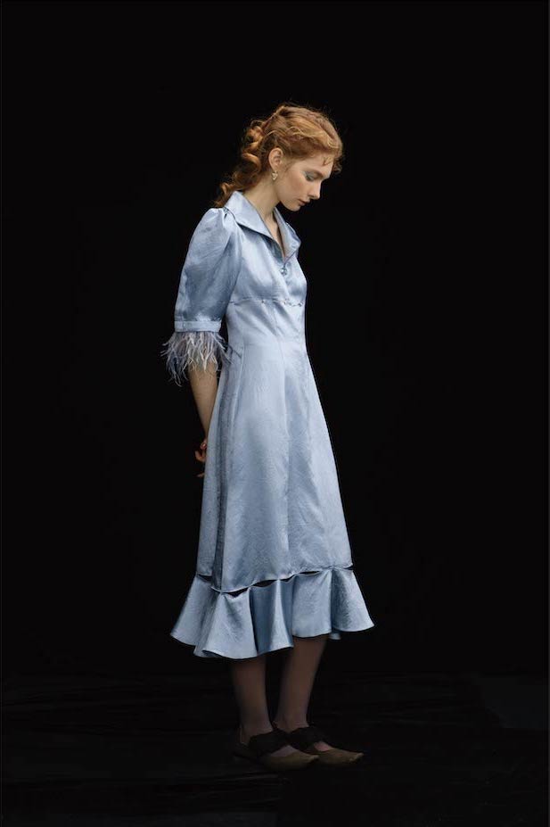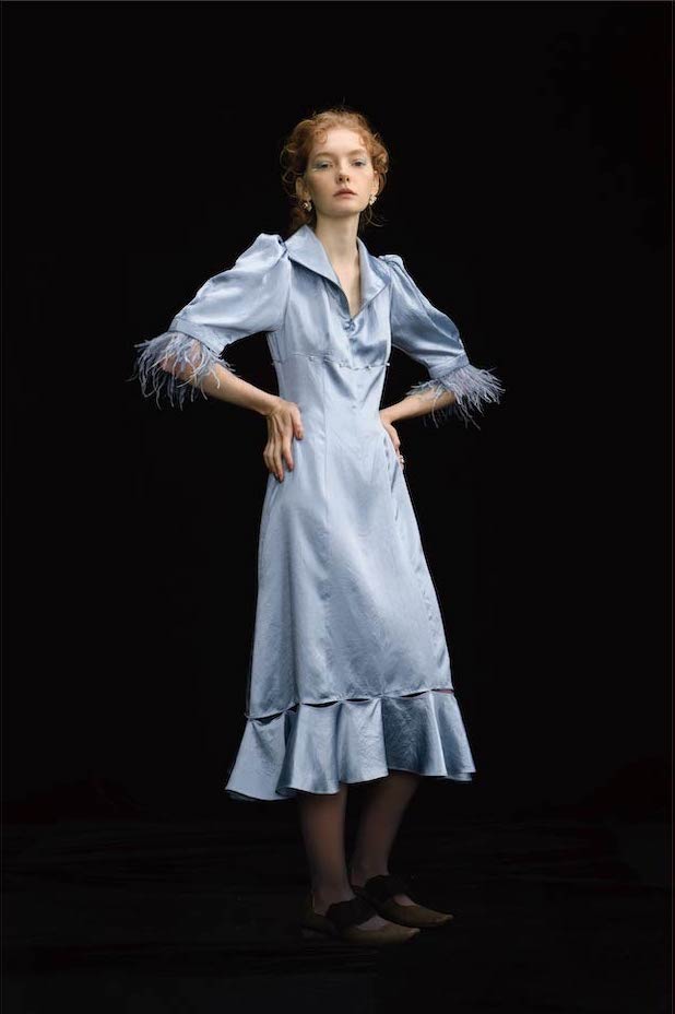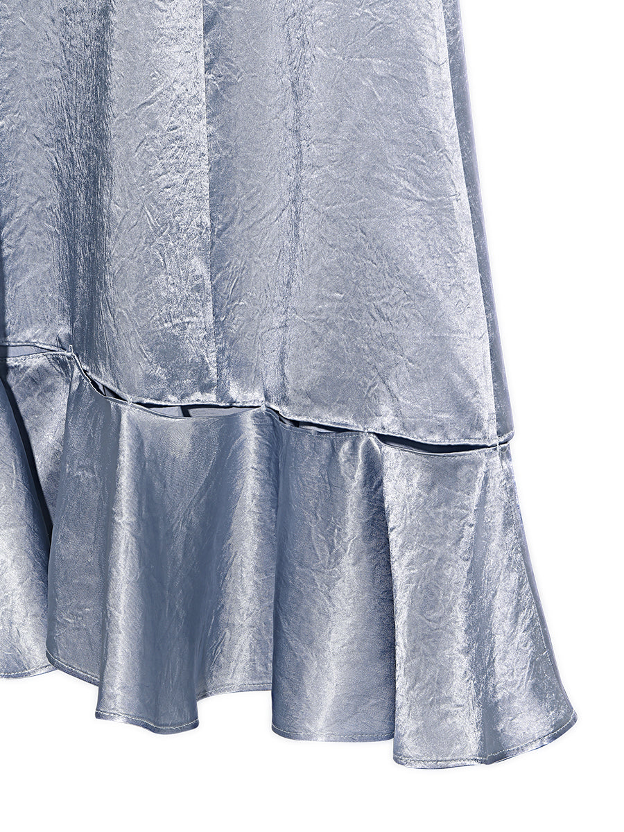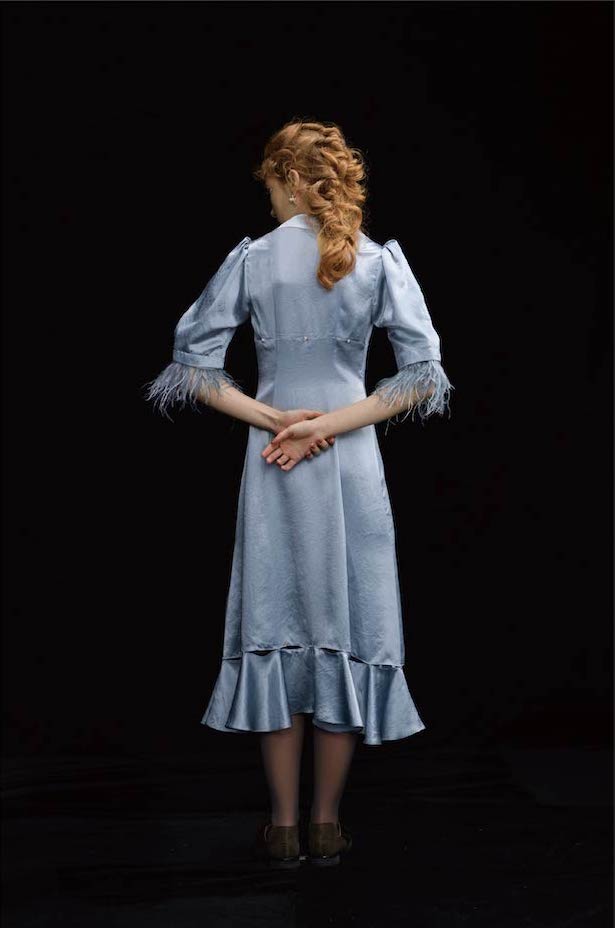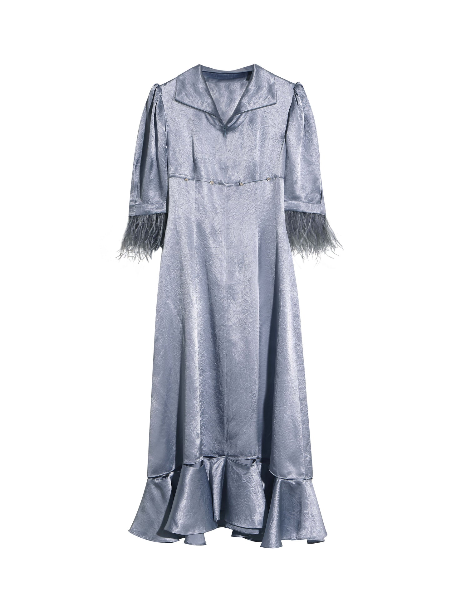 Classic French Gigot Sleeves, Detachable Feather Trim for Easy Care, Slim Fit without Tightness, Body Curve Enhancing and Accommodating, Glossy Fabric with Wrinkle Texture and Delicate Pearl Silver Buckle Details, Layered Hollow Skirt for Elegant and Lightweight Appeal