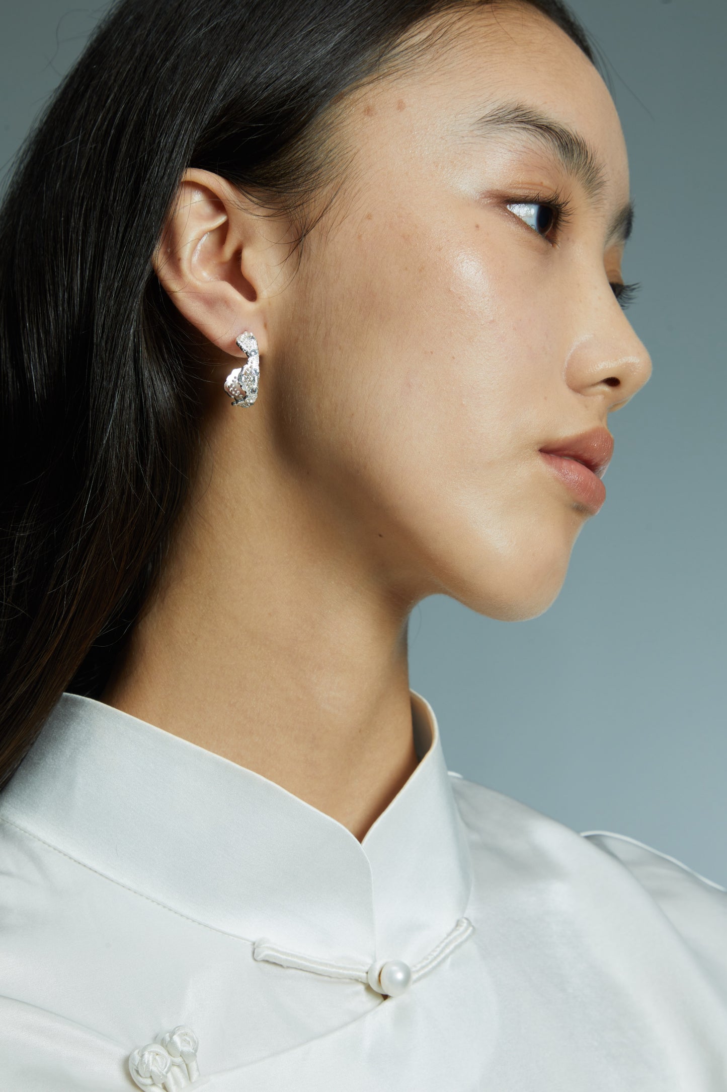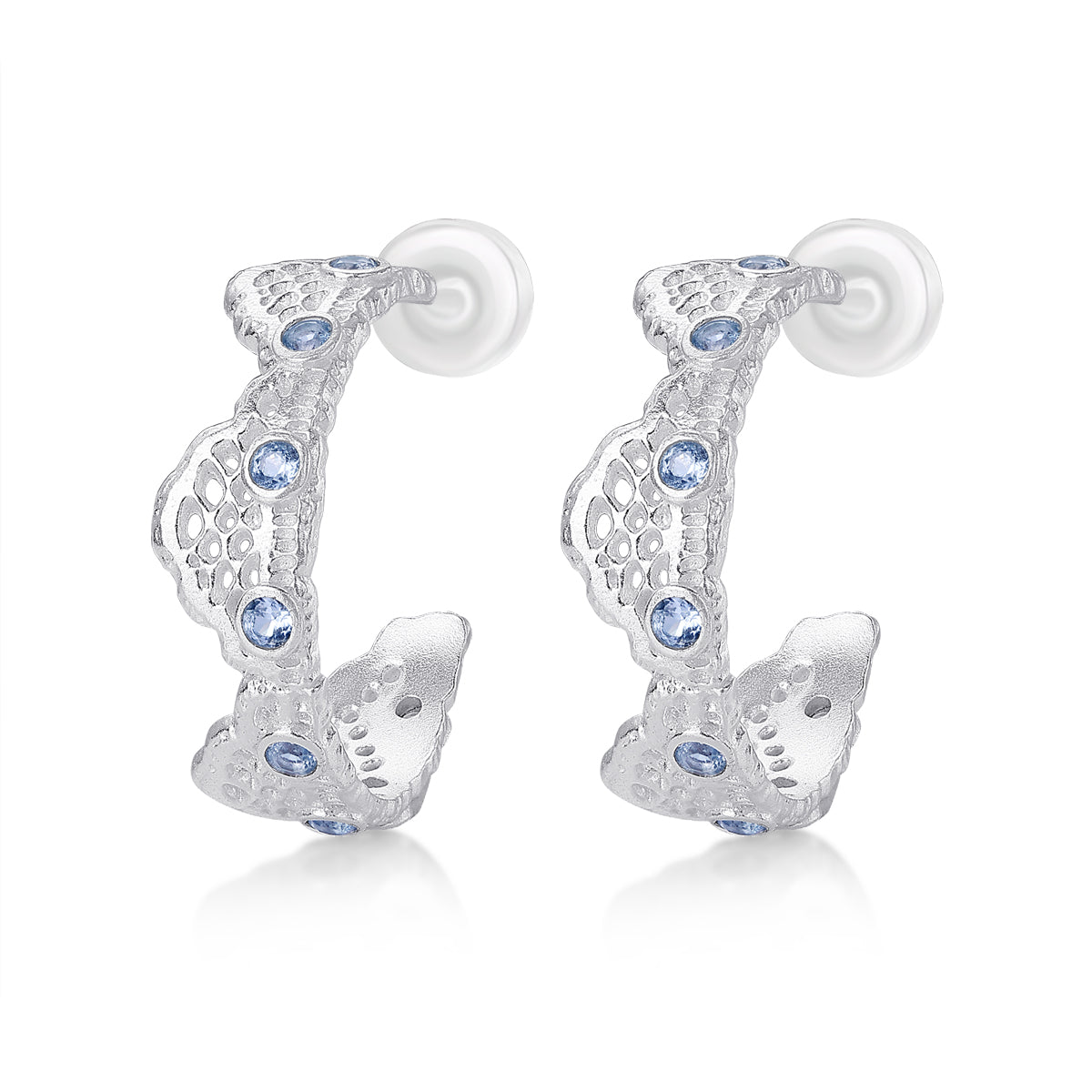 These delicate small hoop earrings are designed with a lace-edge detail, adding a touch of elegance to any outfit. Crafted from 925 silver with a bright silver plating, the earrings feature synthetic spinel, providing a striking contrast and extra sparkle. The combination of the intricate lace design and the smooth finish makes these earrings a timeless accessory for everyday wear or special occasions.