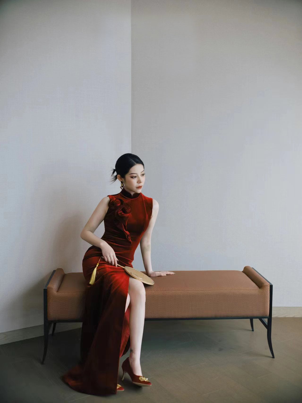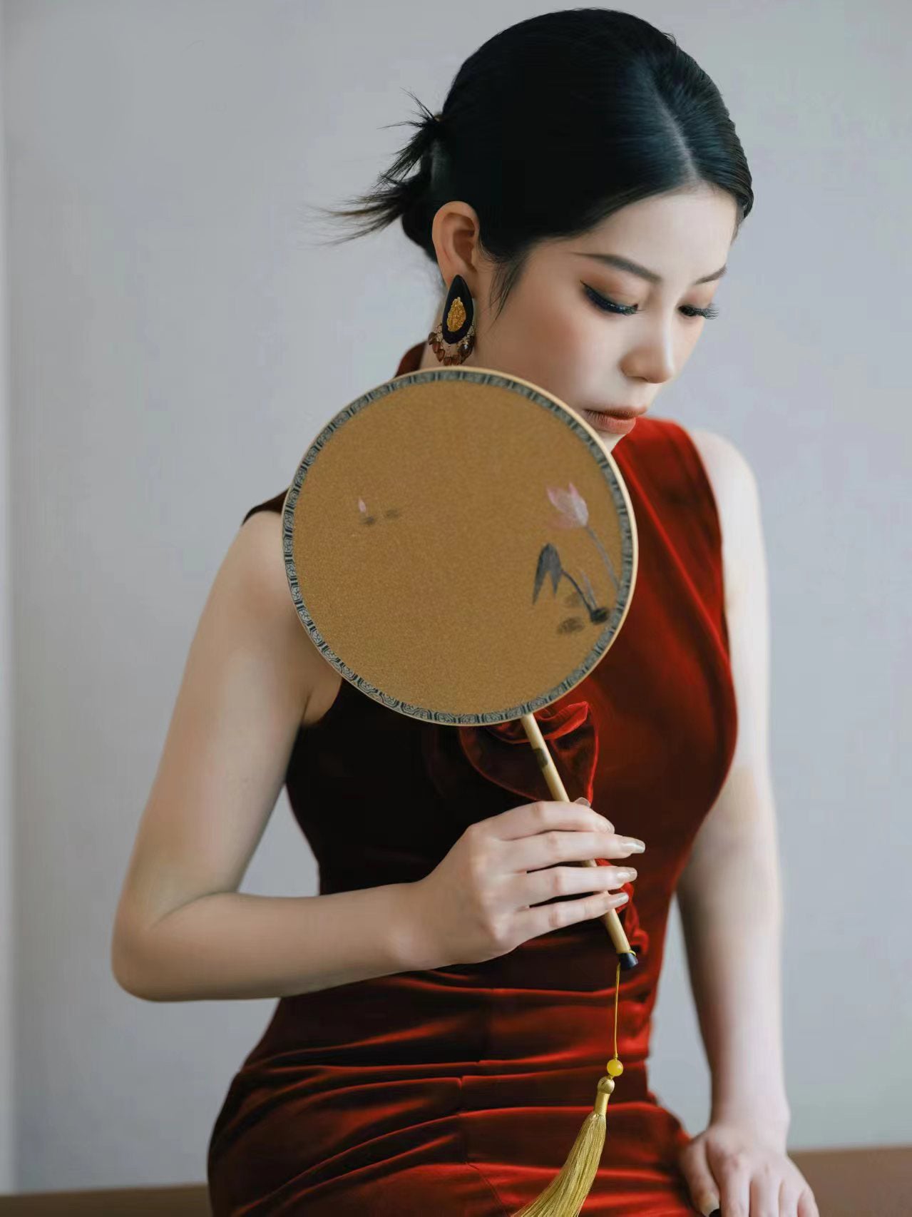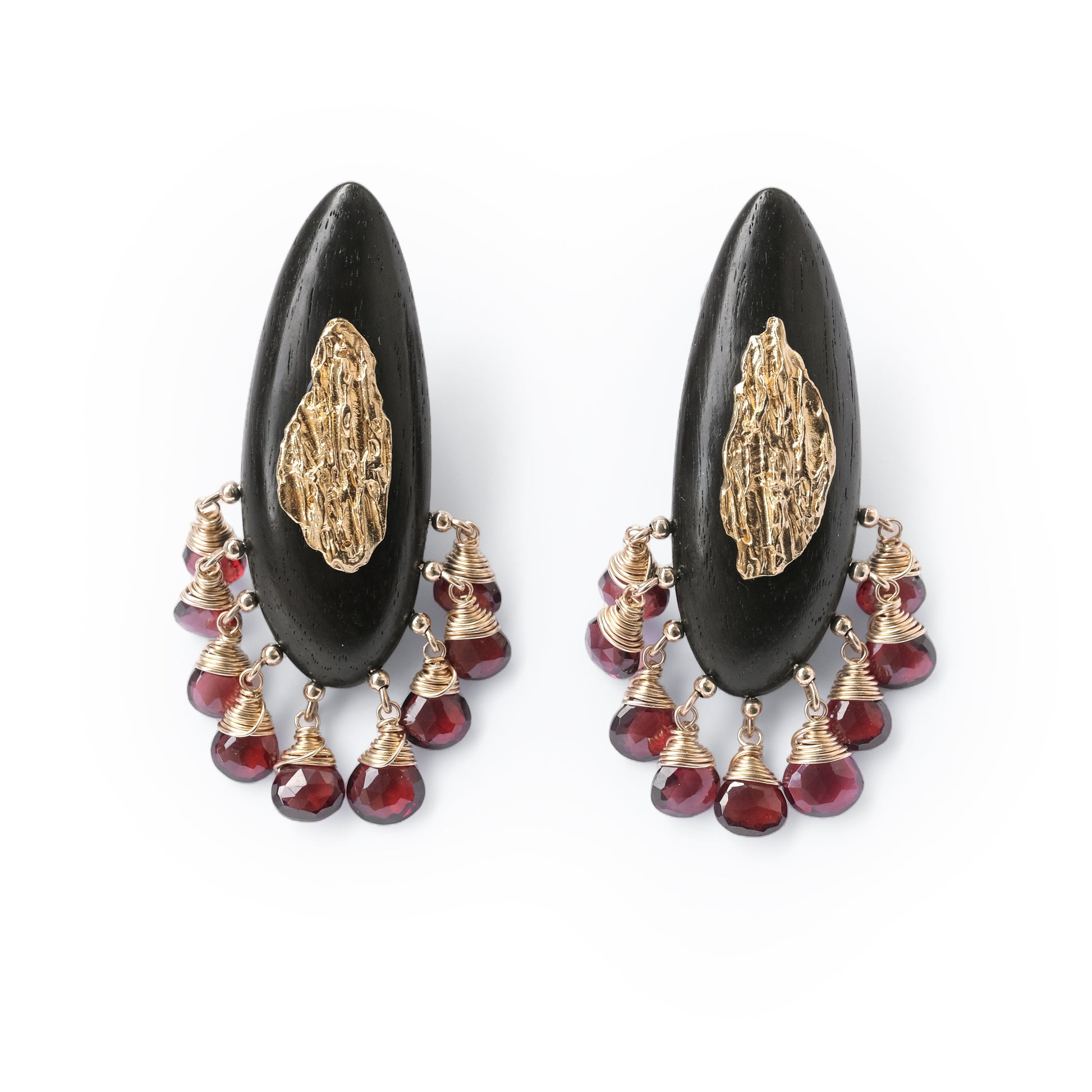 Li Realm Dewdrop Crystal Drop Earring Ebony Garnet Crystal Silver Thick Gold Plated
