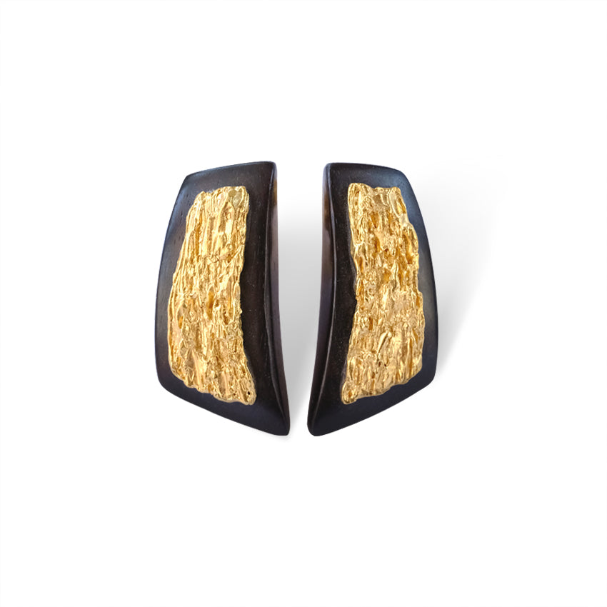 Li Realm Moon Ebony Boat Shadow Earring Ebony Ear Stud Silver 23K Thick Gold Plated