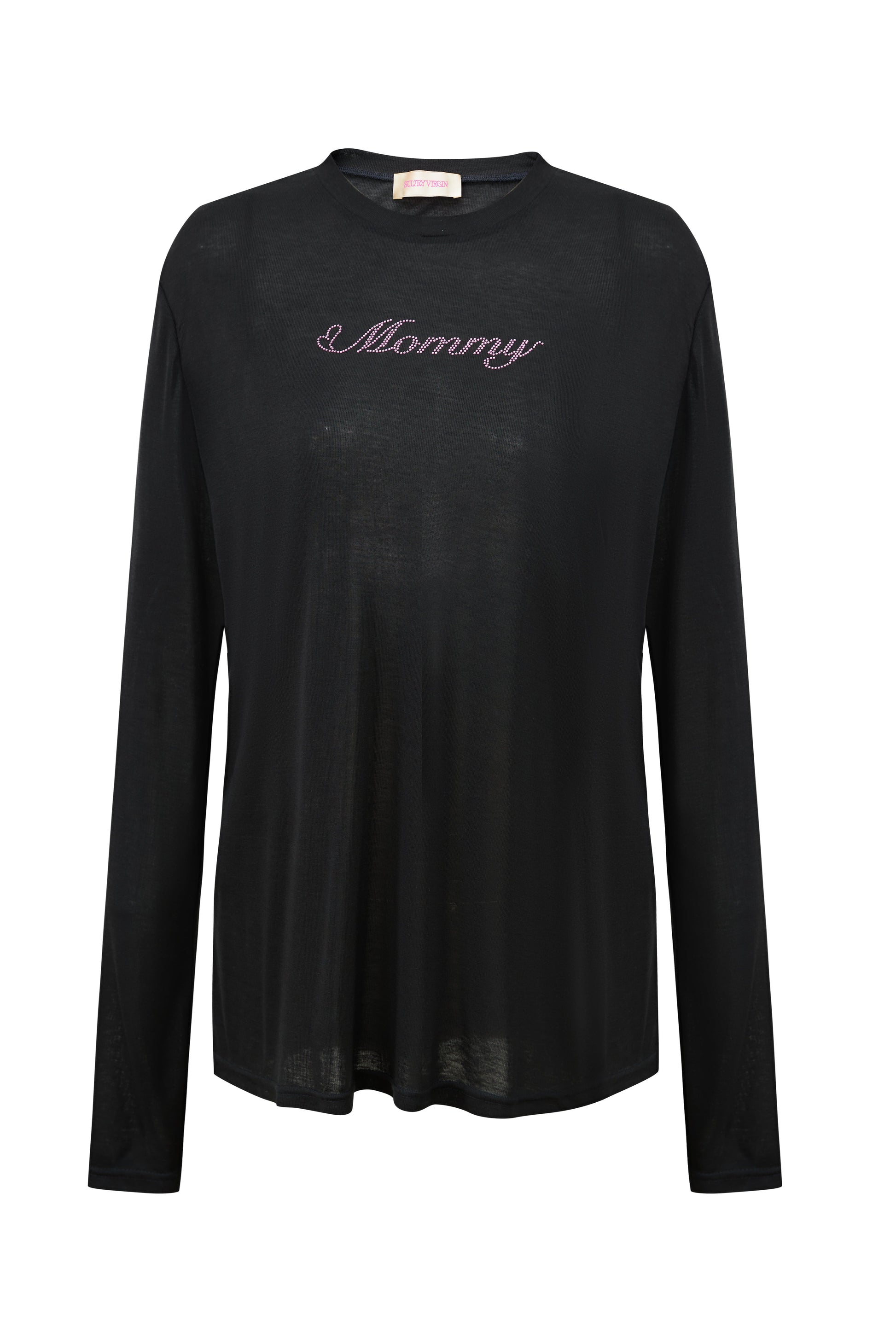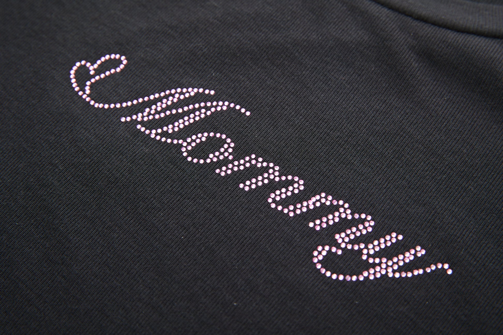 - Contrasting “Mommy” crystal-cut