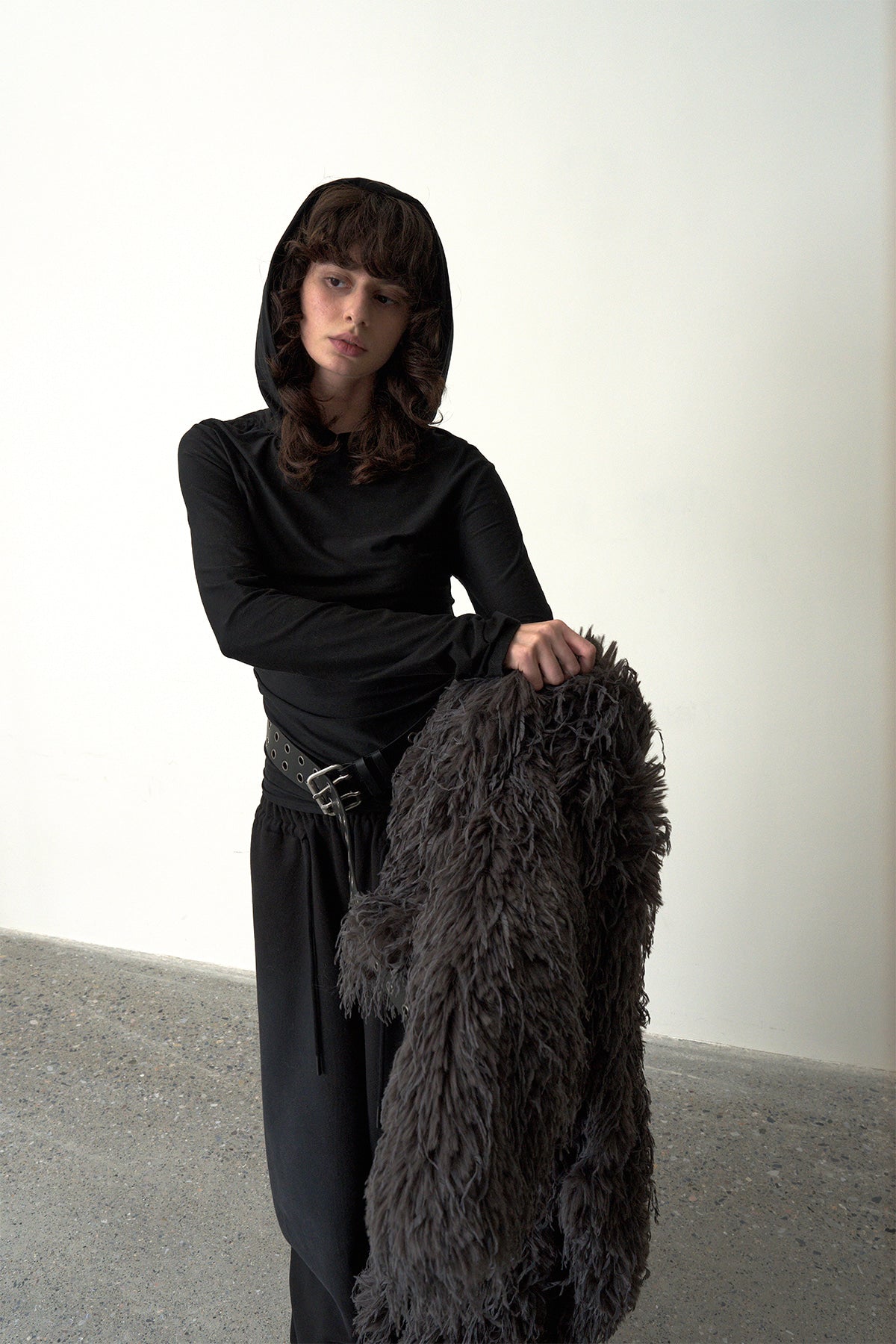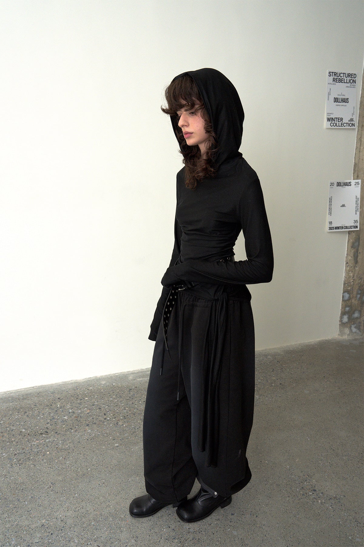 Ruched Hooded Top-Black