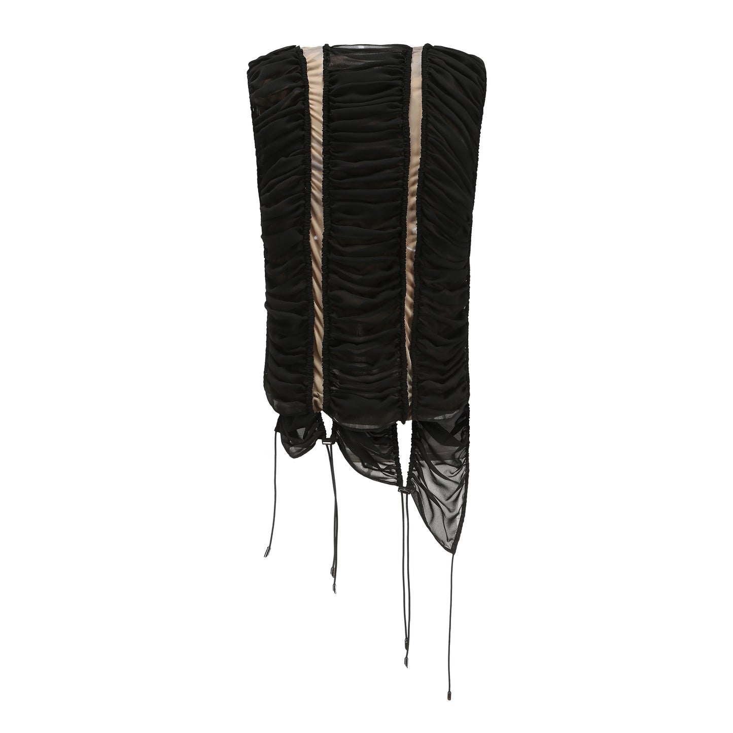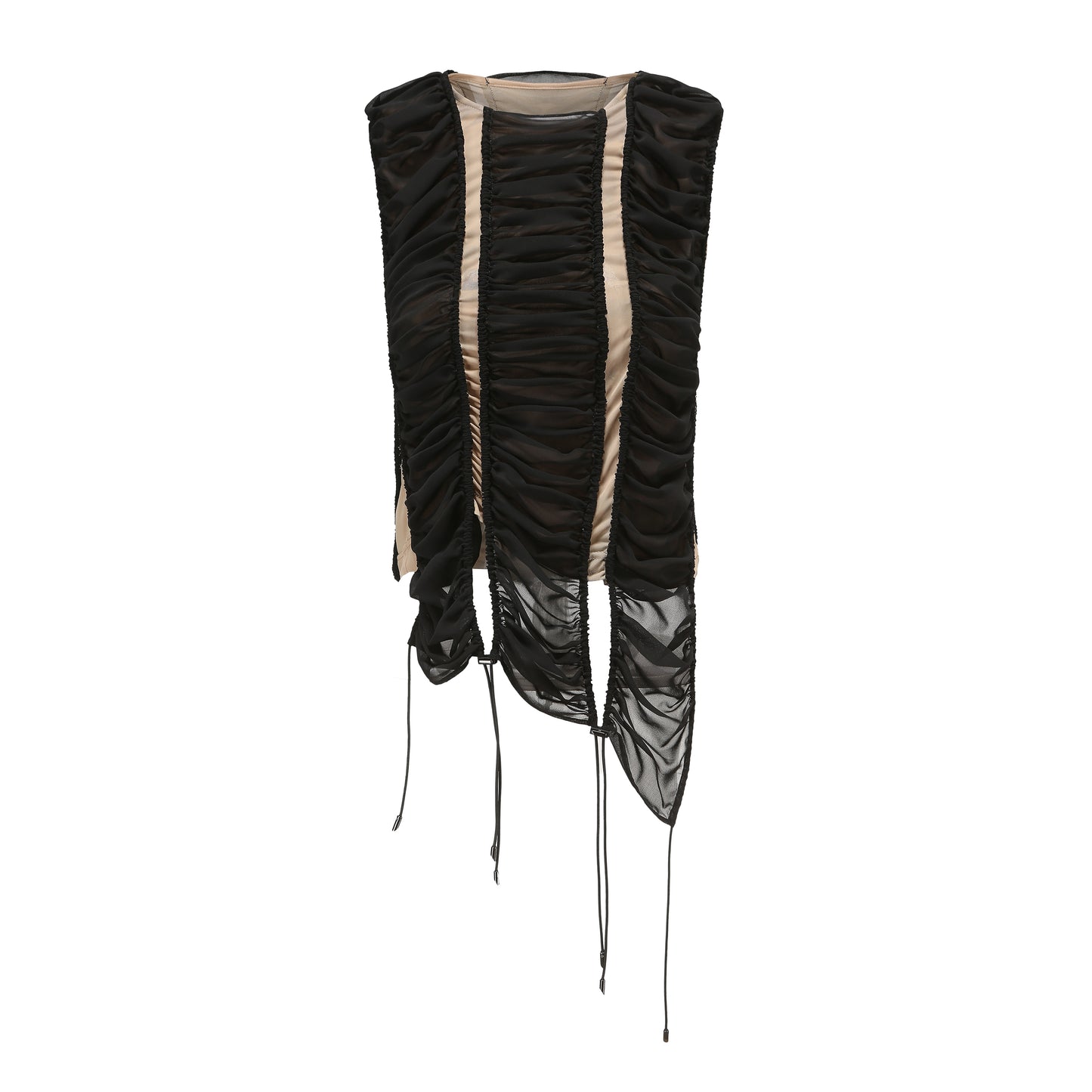 Spandex base fabric and chiffon are pieced together, with three pieces of chiffon including drawstring for adjustable fit. Romantic, free, and casual, suitable for different occasions.