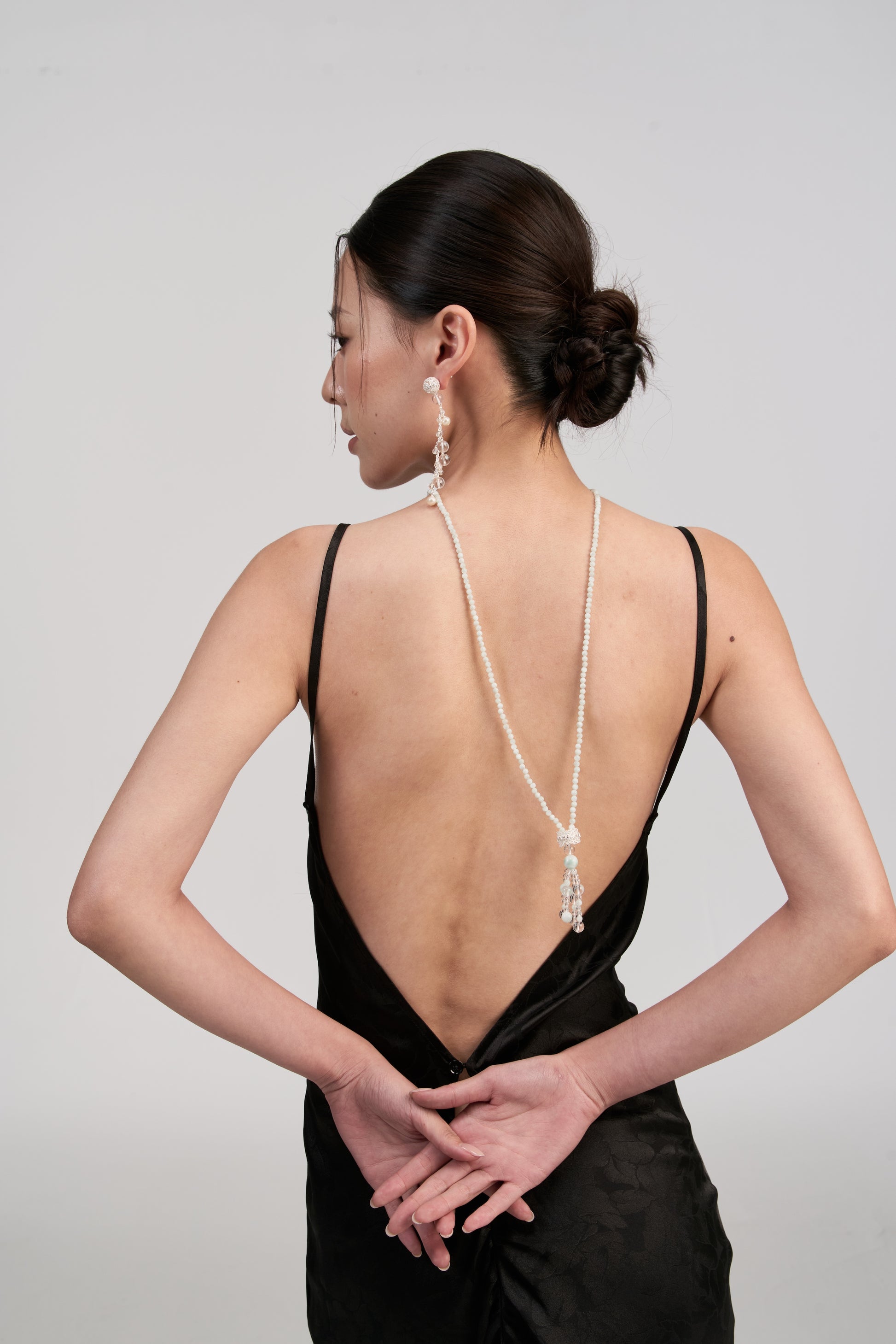 Crafted in copper with bright silver plating and protective e-coating, this verdant vine beaded necklace features white crystal, green angelite, and sparkling cubic zirconia, combining intricate vine-inspired textures with elegant brilliance, evoking the serene allure of the Ethereal Void.