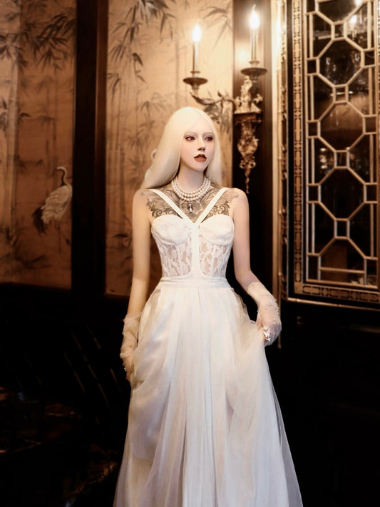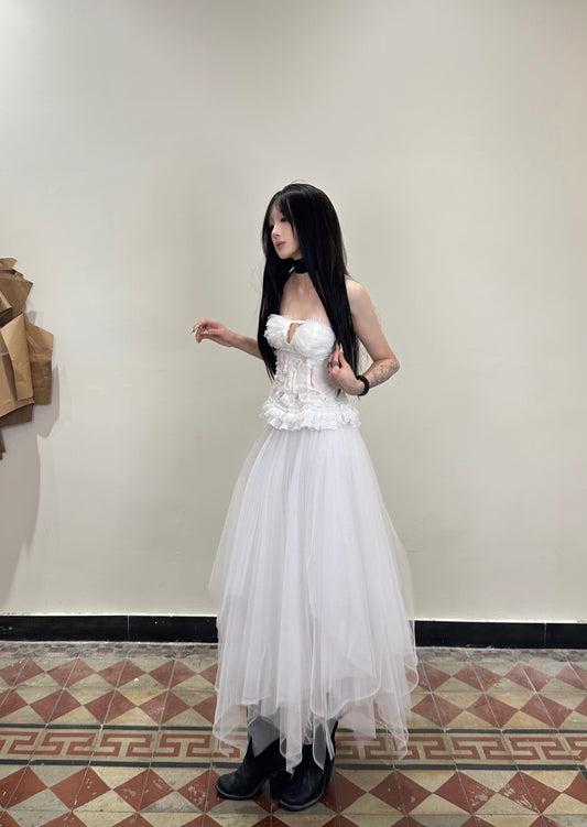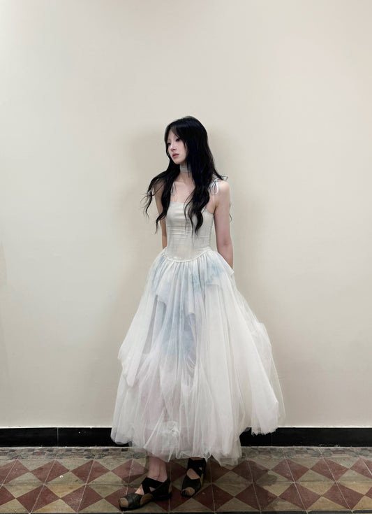 Bloody Mary Spaghetti Strap Tulle Dress 2.0-white