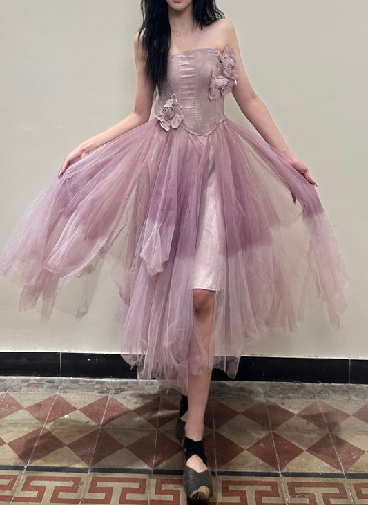 Garden Thicket Spirit Bustier Tulle Dress (Detachable Straps) Purple Floral Version