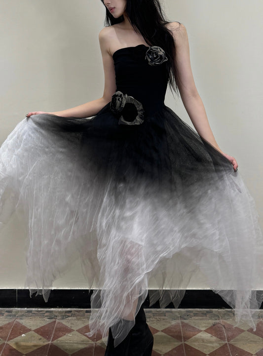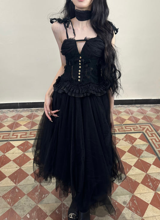 Garden Thicket Spirit Bustier Tulle Dress (Detachable Straps) Black Floral Version
