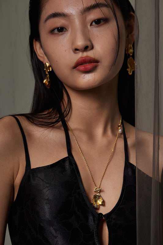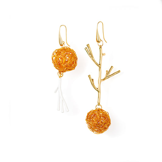Texture Series - Gold Woven Bead Chain Pendant Earrings