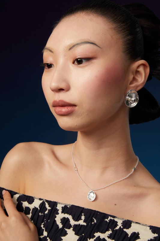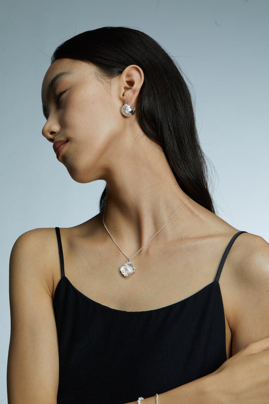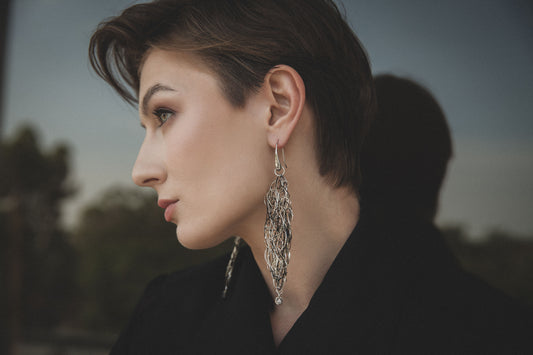 Texture Series - Silver Woven Bead Chain Pendant Earrings