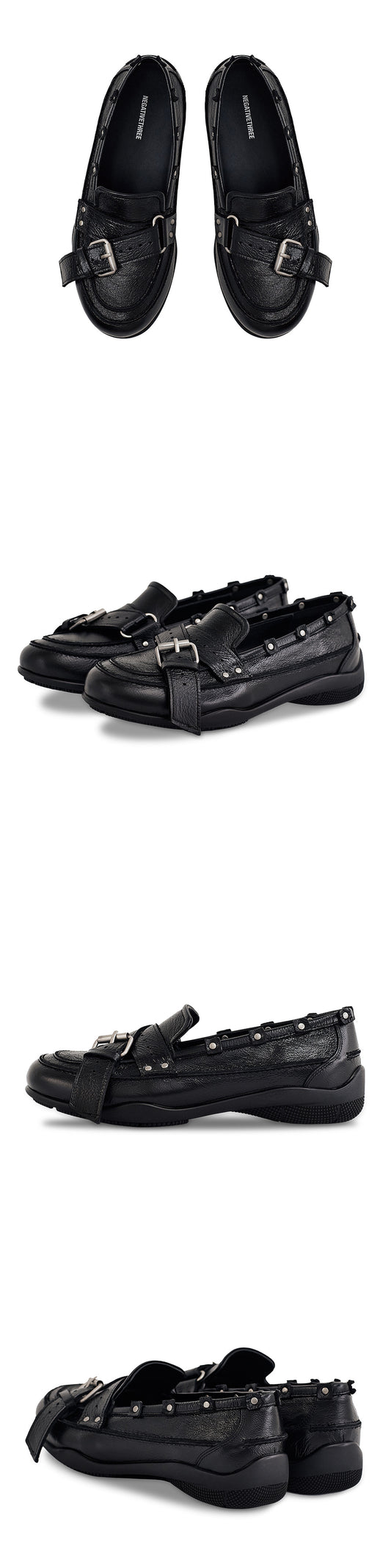 Belted Stud Loafer_Polished Black