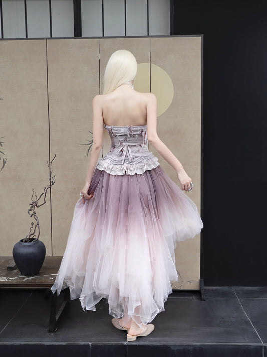 Forest Elf Tulle Skirt Spray-Dyed Gradual Pink-Purple