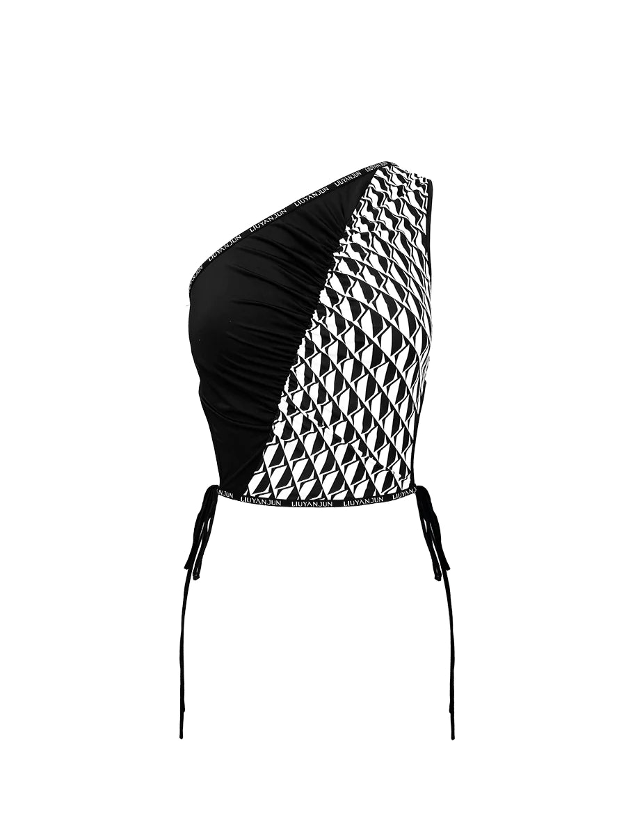 ASYMMETRIC CONTRAST PRINTED BACKLESS CROP TOP