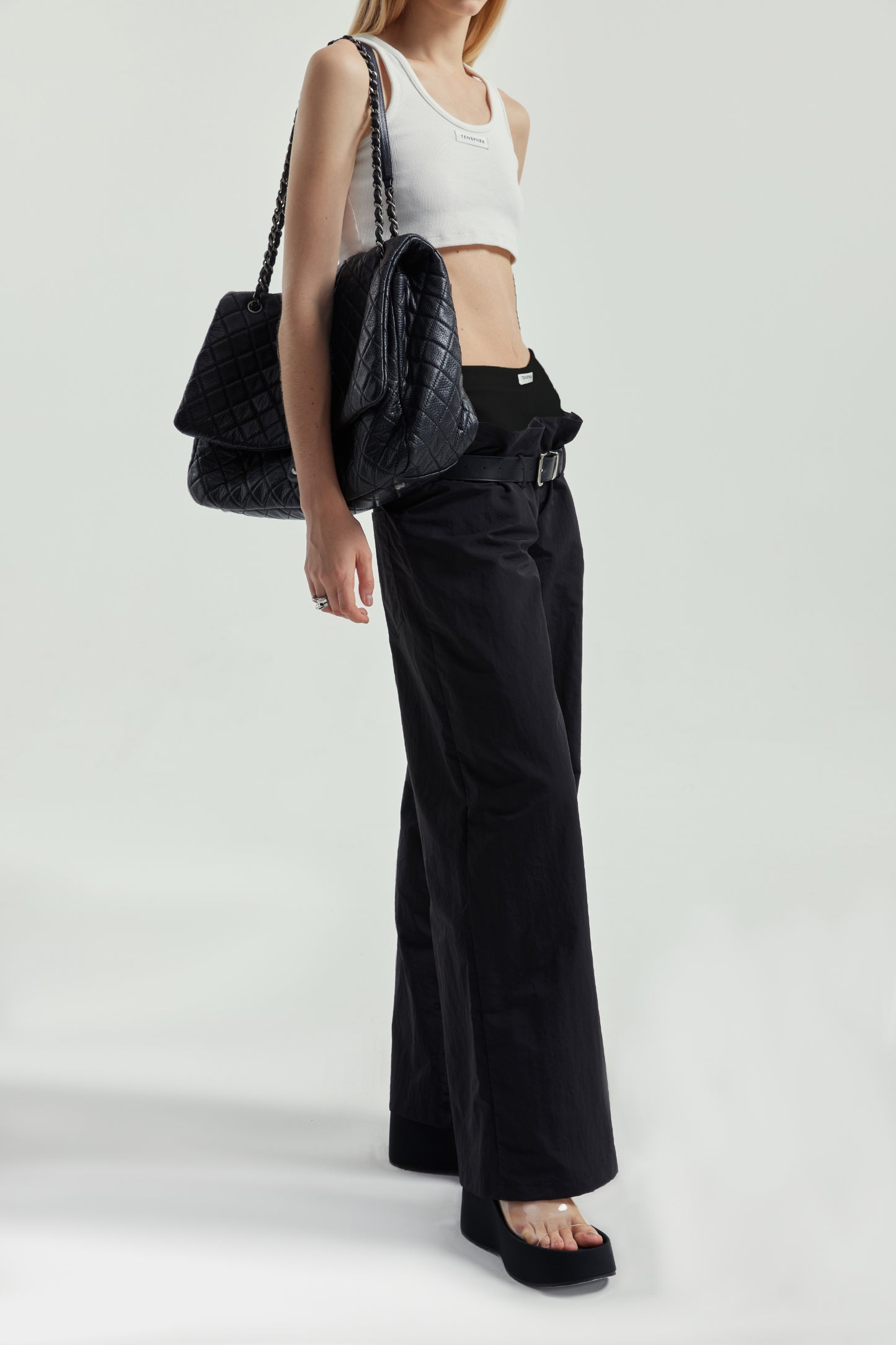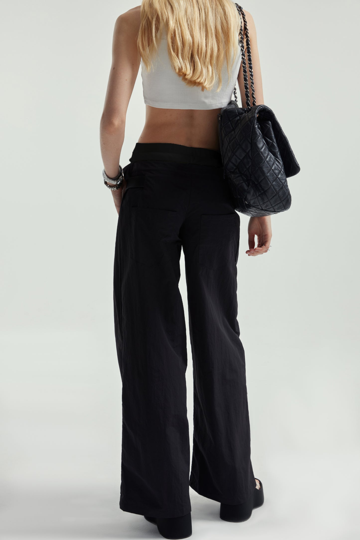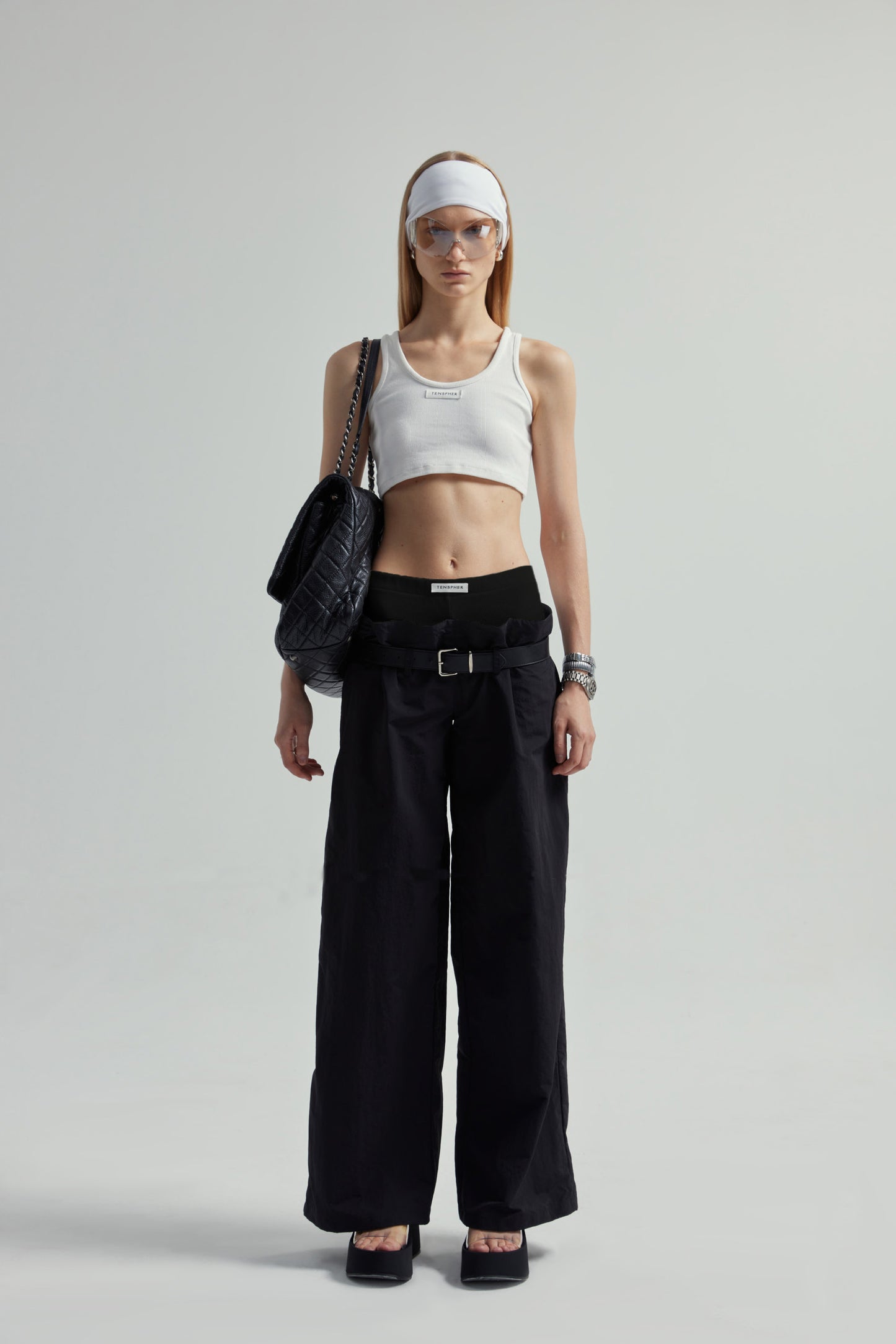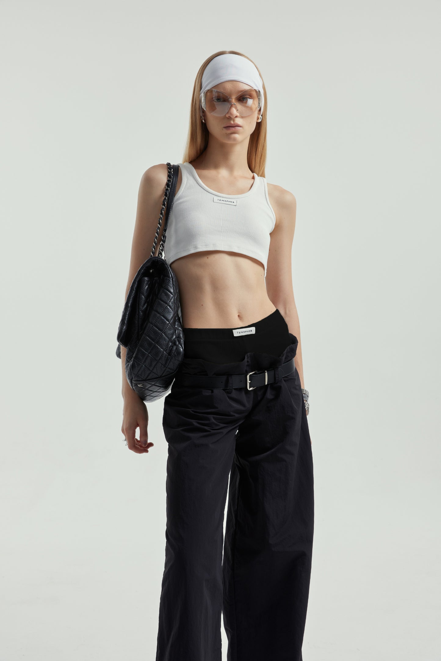 The ribbed patchwork fake two-piece cargo pants come with a detachable belt for adjustable fit. They feature a casual three-dimensional pleated design that adds a relaxed and stylish look. The waistband is made of stretchy ribbed fabric, offering comfort and flexibility. The pants are equipped with practical dual back pockets, making them a chic and fashionable choice.