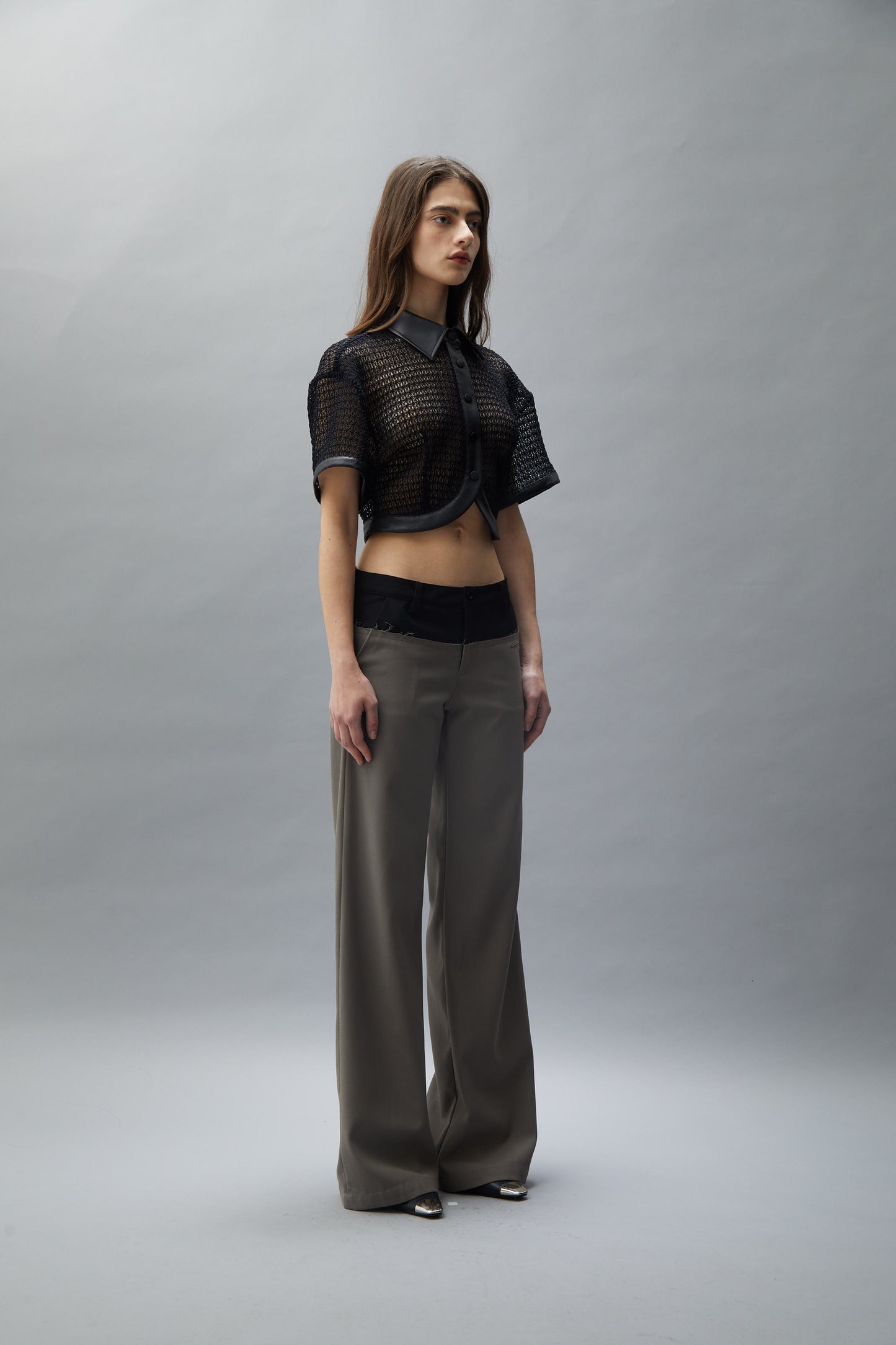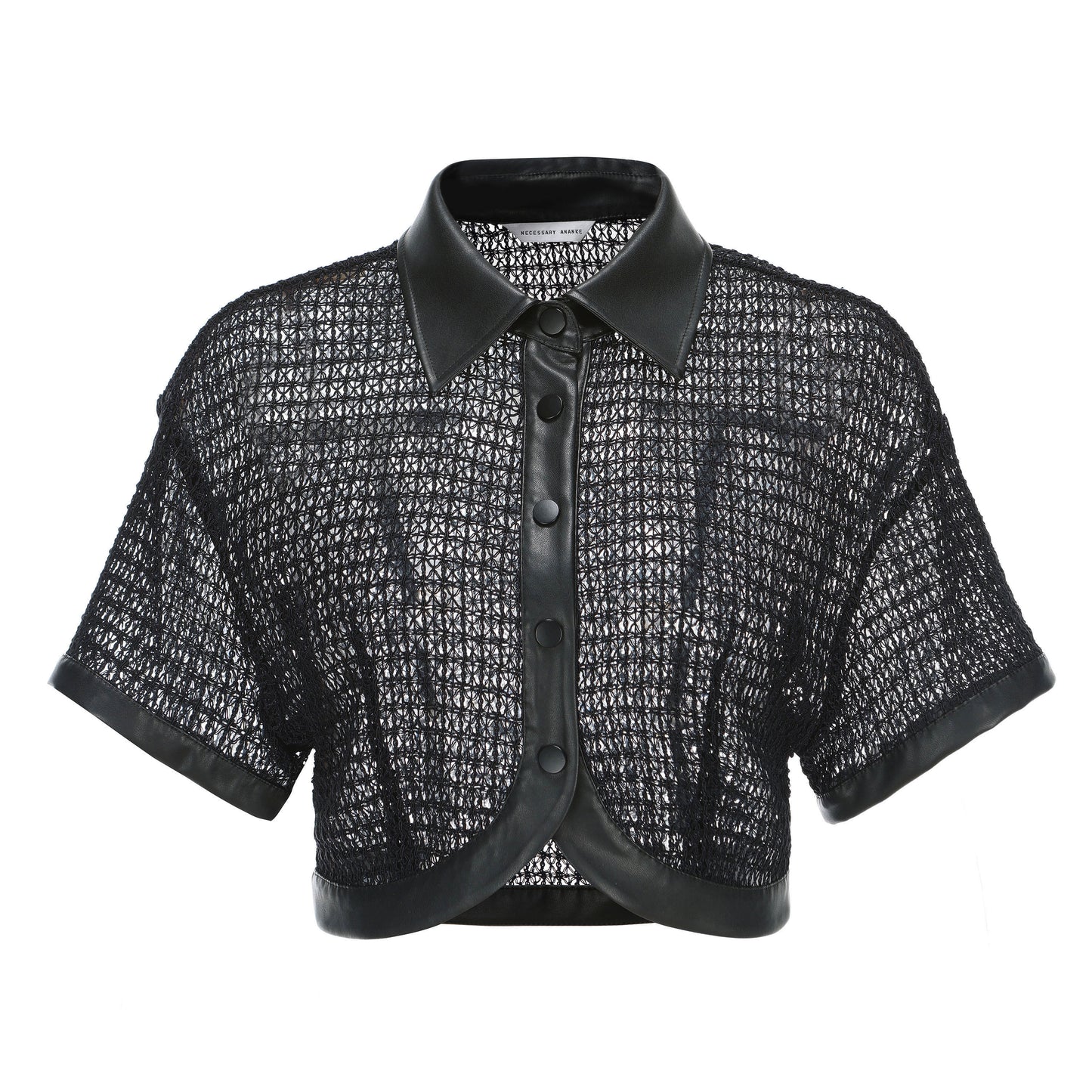Black Mesh and Leather Patchwork Short Sleeve Cardigan