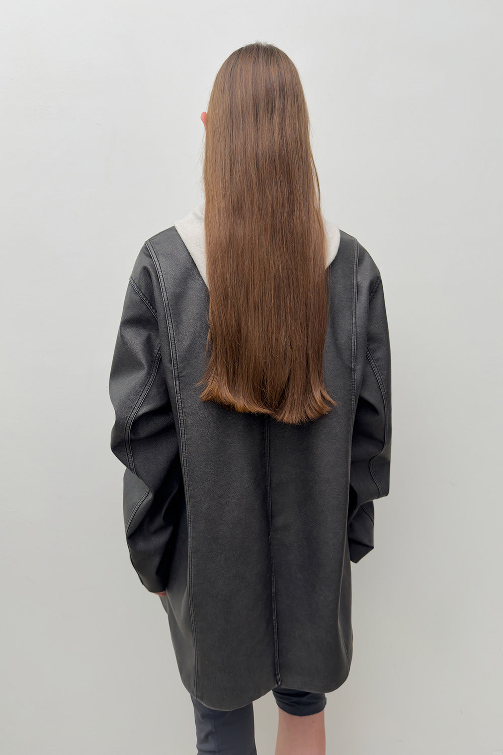 A vintage-inspired washed leather jacket featuring refined detailing and a structured silhouette.