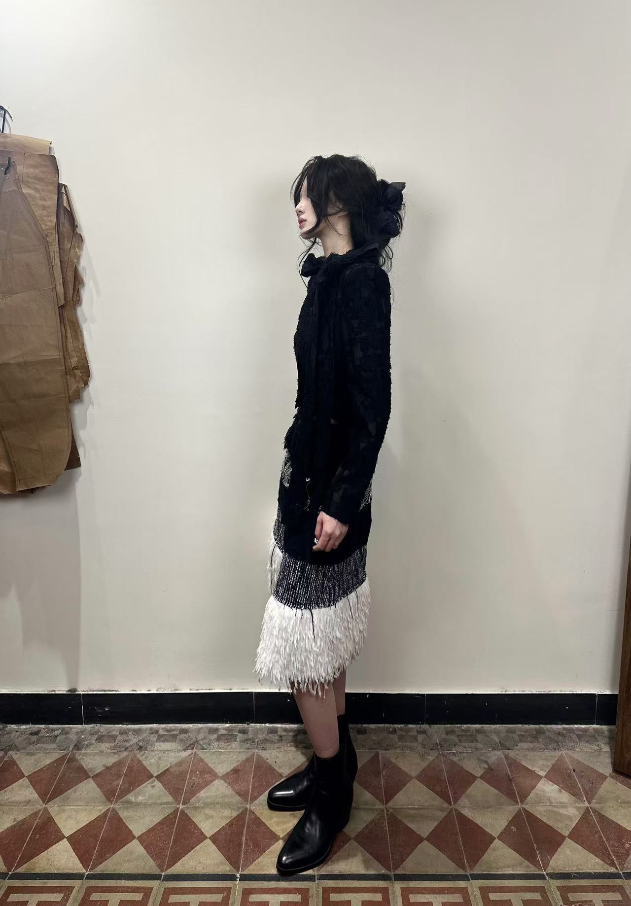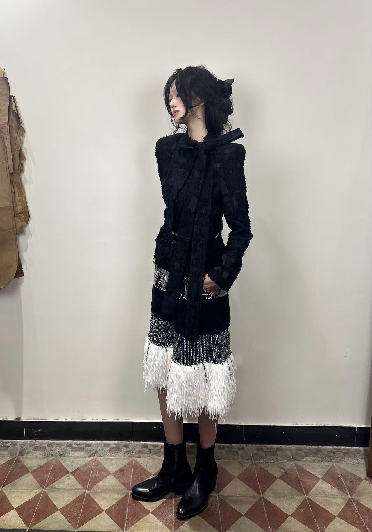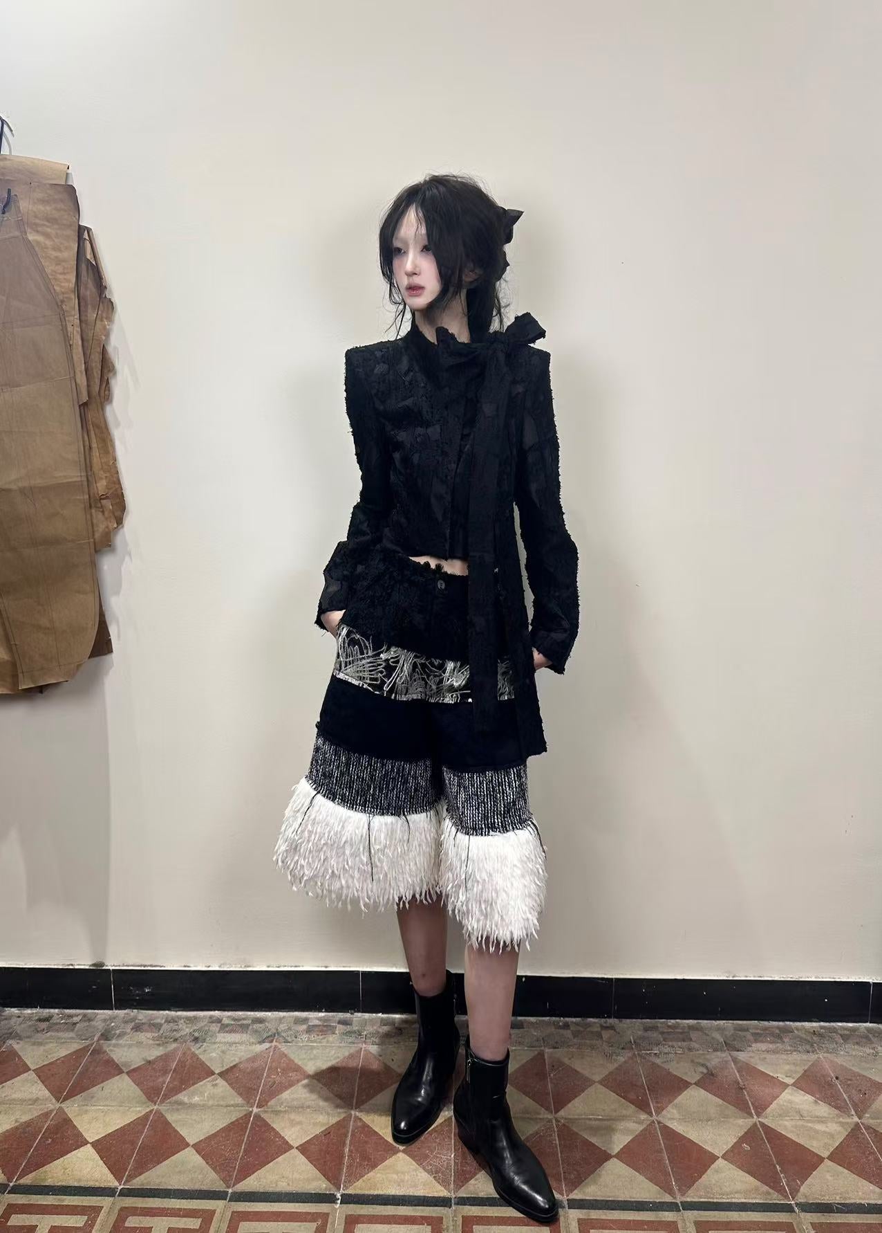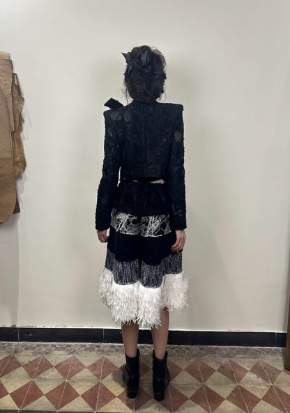 ROMAN SUIT WITH BOW SHORT JACKET-Handmade