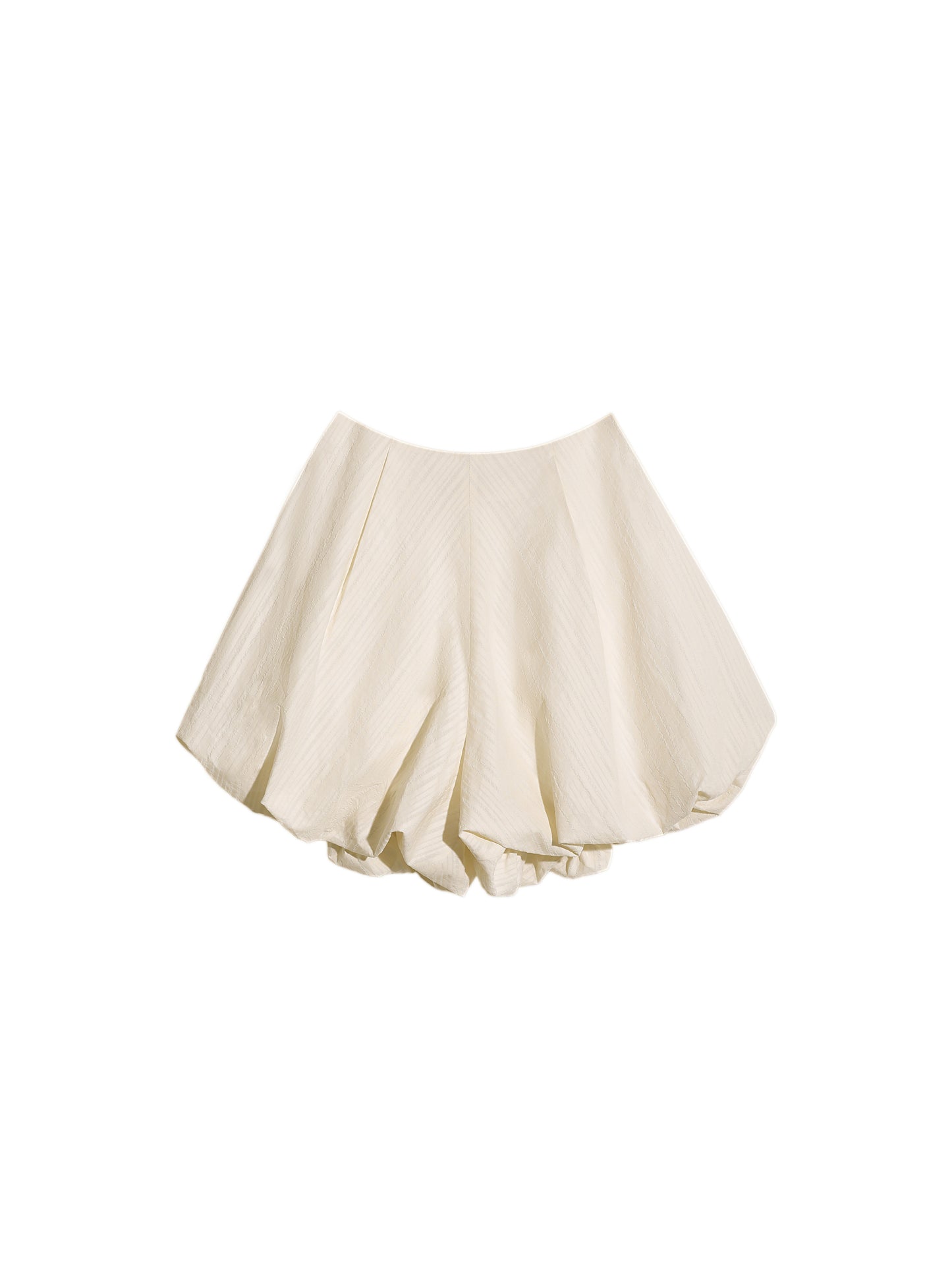 Minimalist Silhouette with Smooth Lines, Elasticated Cuffs to Prevent Exposure, Voluminous Bubble Silhouette, Elastic Waistband for Inclusive Sizing, High-waisted Shorts Enhancing Body Proportions, Classic Versatile Design for Effortless Relaxation
