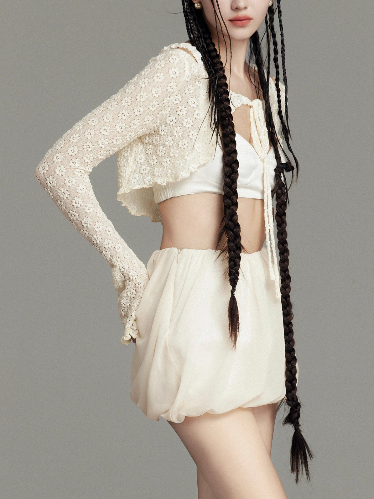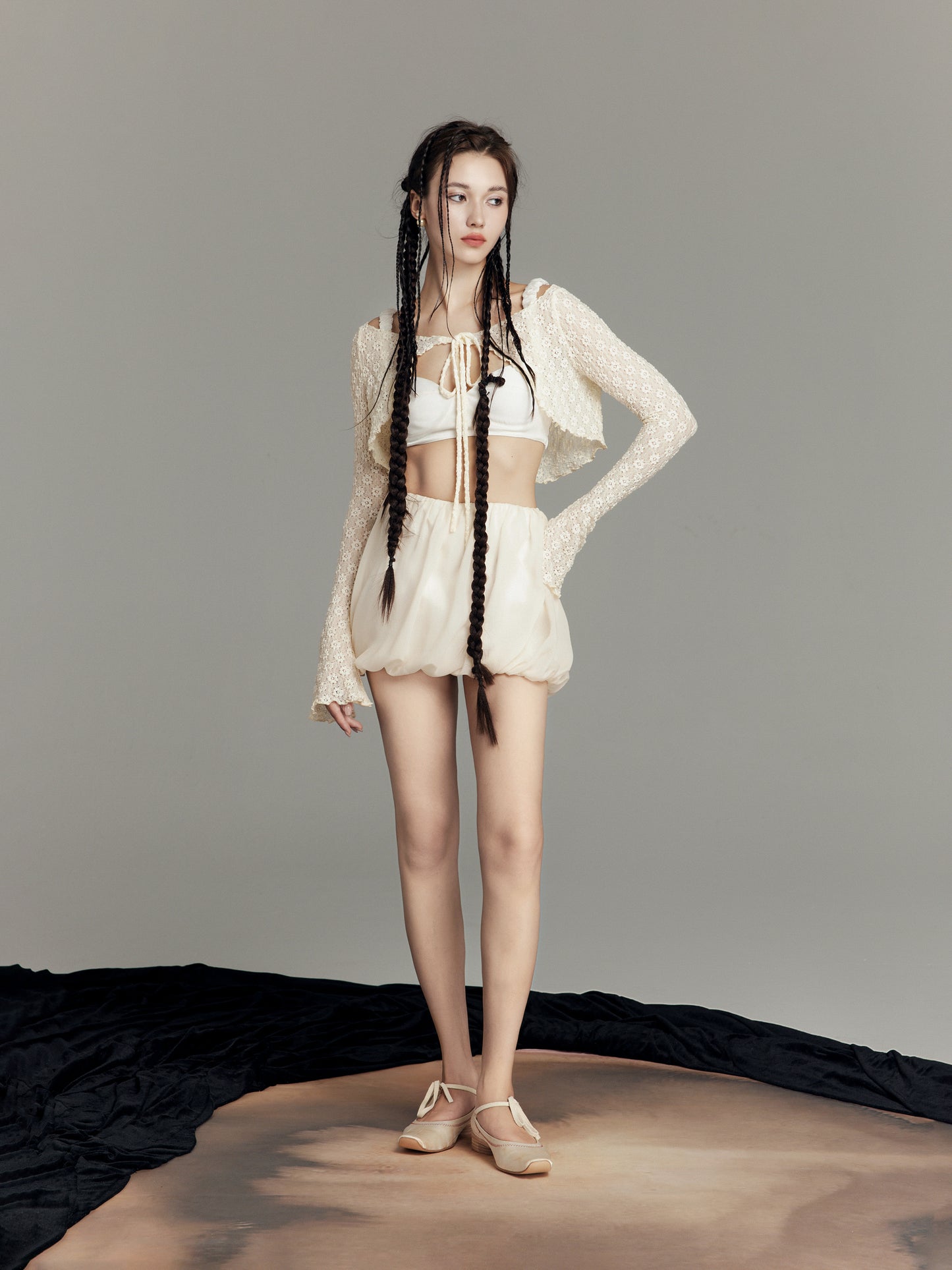 The skirt is made with two types of materials. Material A consists of 78% Cotton and 22% Nylon, while Material B is made of Polyester.