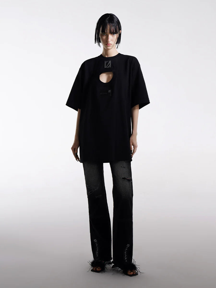 DESTRUCTED T-SHIRT WITH TWO-WAYS WEARING