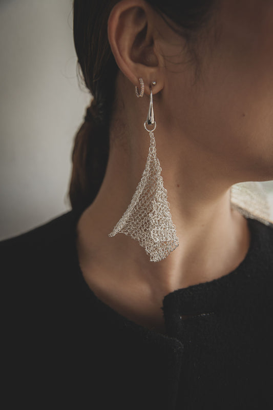 Texture Series - Silver Woven Bead Chain Pendant Earrings
