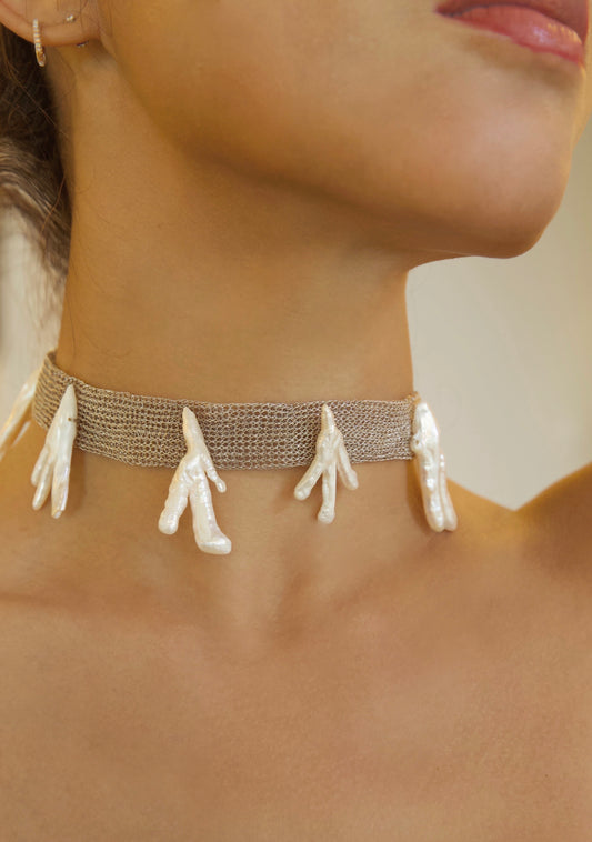 Chasing Light Series - Silver Double Layer Woven Irregular Pearl Collar