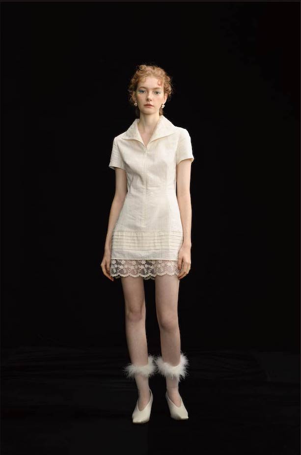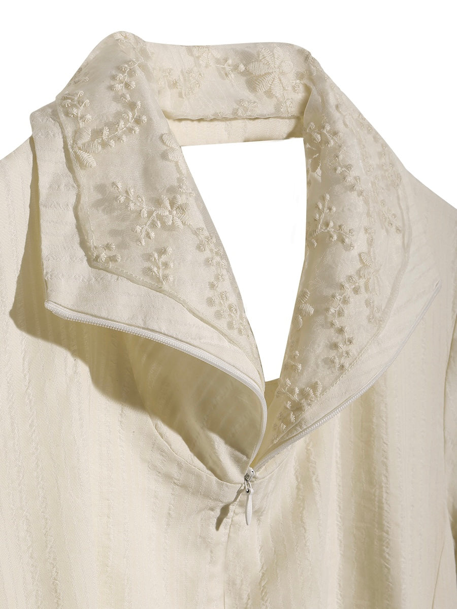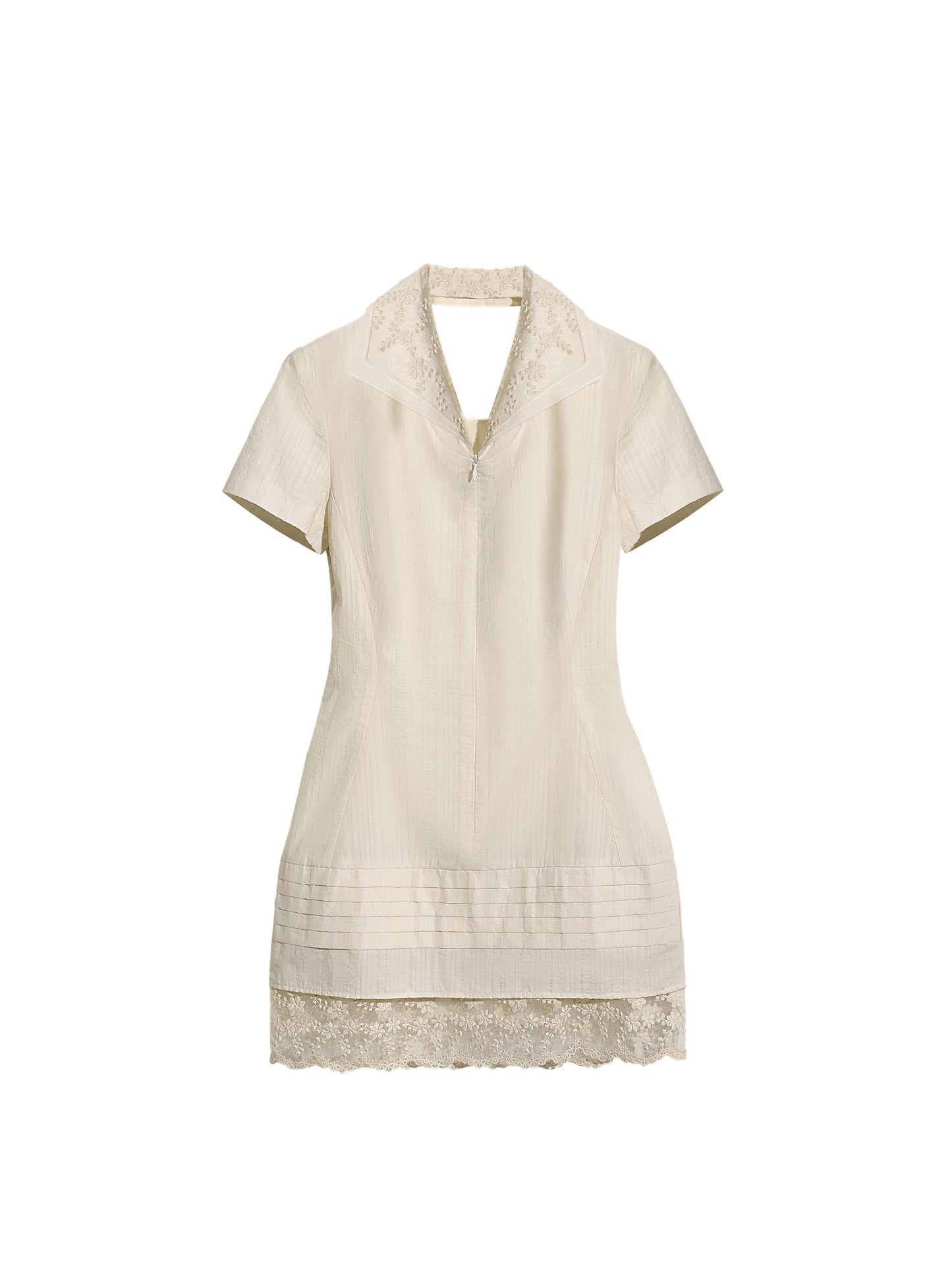 Tulip Silhouette for Defined Waist, Refined yet Everyday Wear, Crescent-shaped Back Cutout, Pleated Skirt Design, French Romance in Fabric Contrast, Effortless Chic with Dynamic and Casual Style