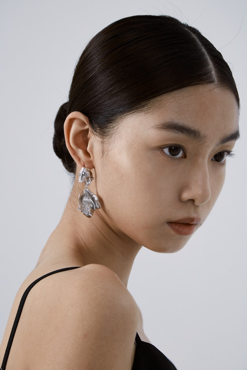 These elegant earrings feature a sophisticated two-tone design with petal-shaped elements, crafted from 925 silver and plated in bright silver. The combination of sleek silver plating and enamel accents gives the earrings a polished, modern look. A versatile piece that can be styled for both everyday wear and special occasions, adding a touch of refined elegance.