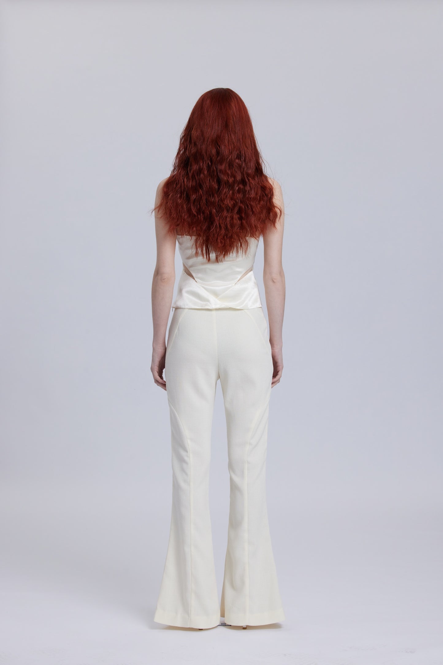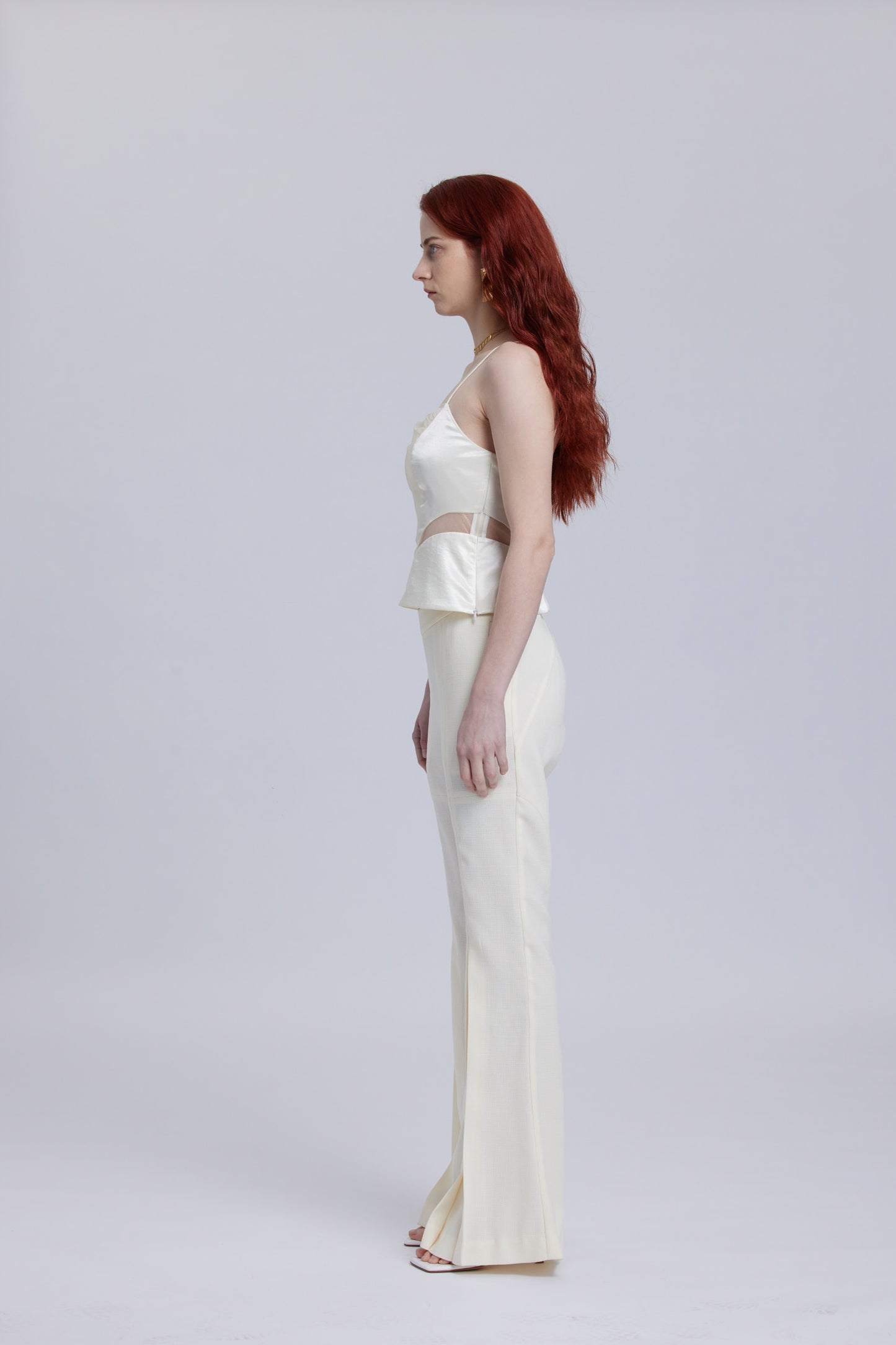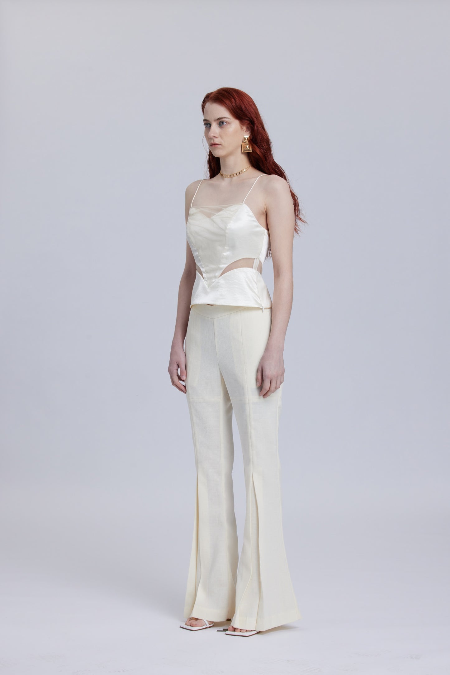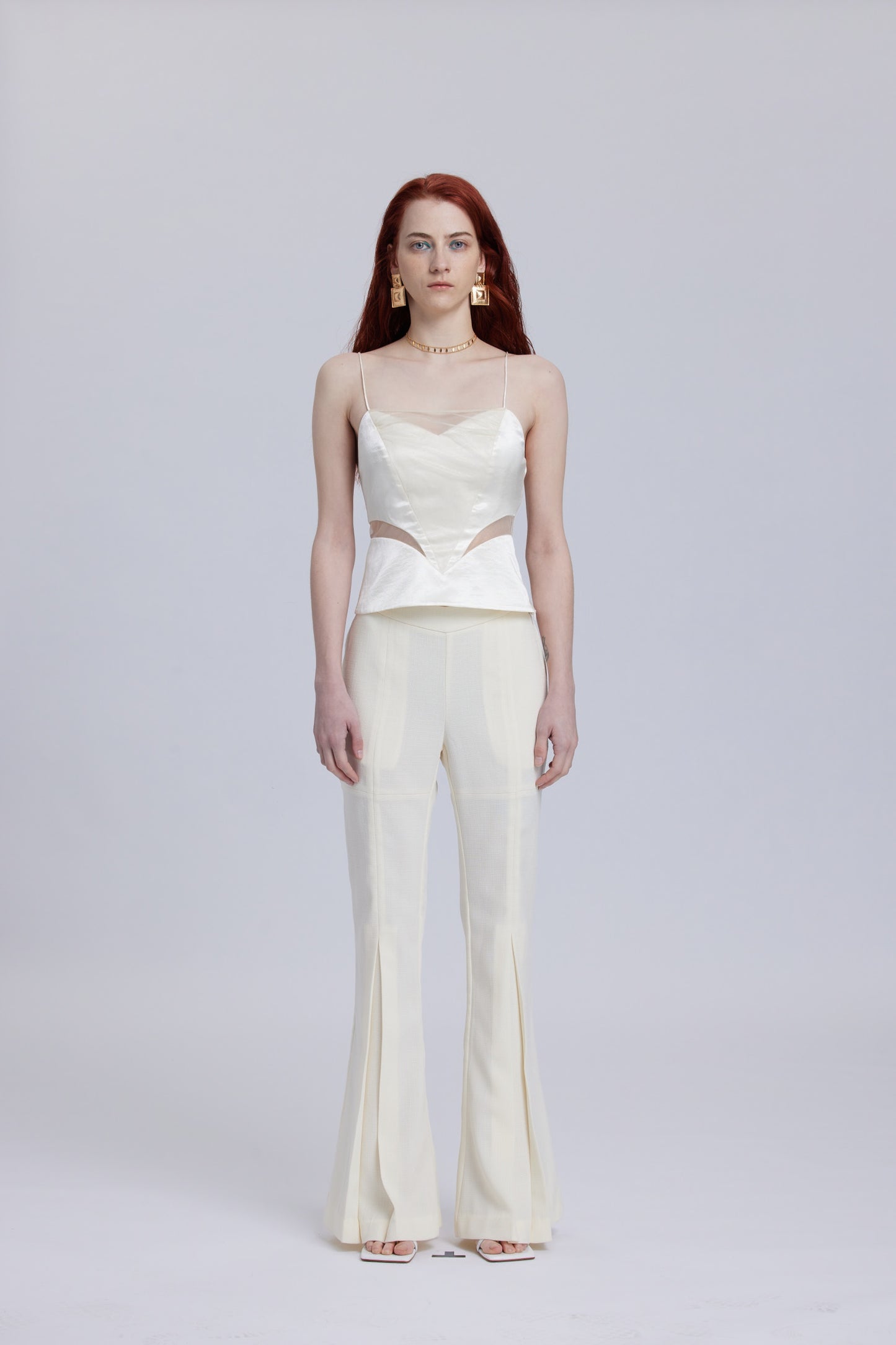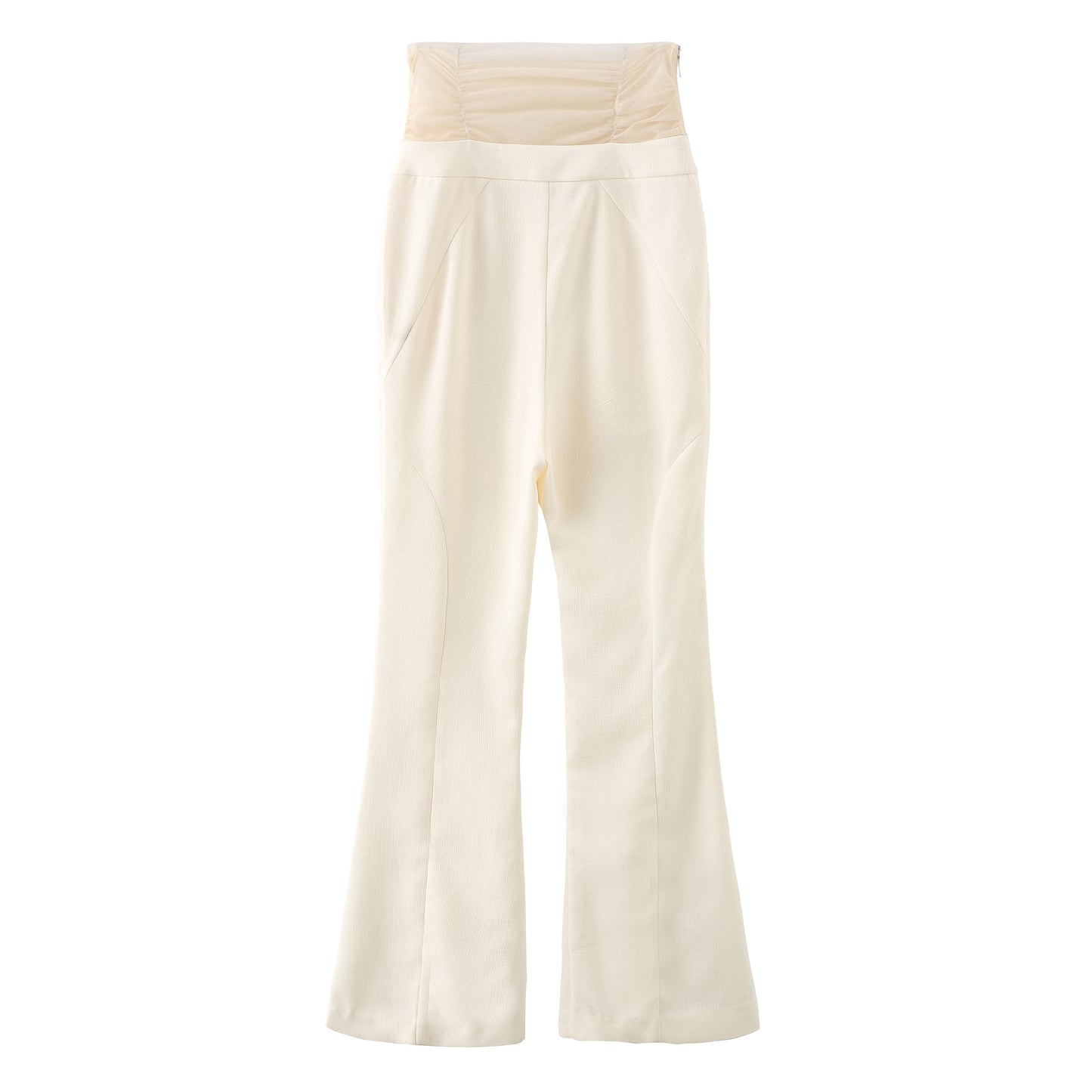White Mesh Waistband Flared Pants