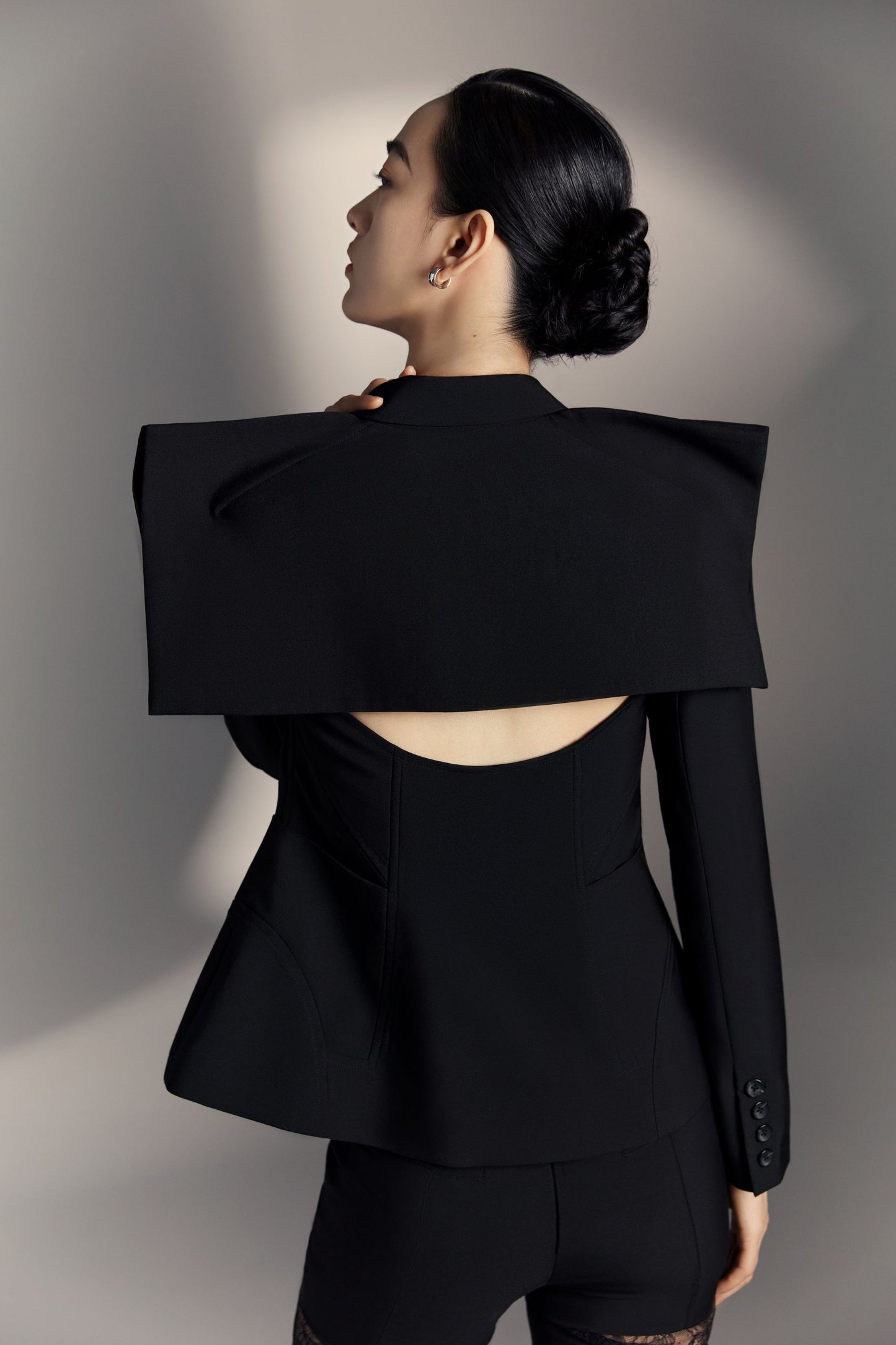 Square-shoulder and Backless Waist-skimming Suit